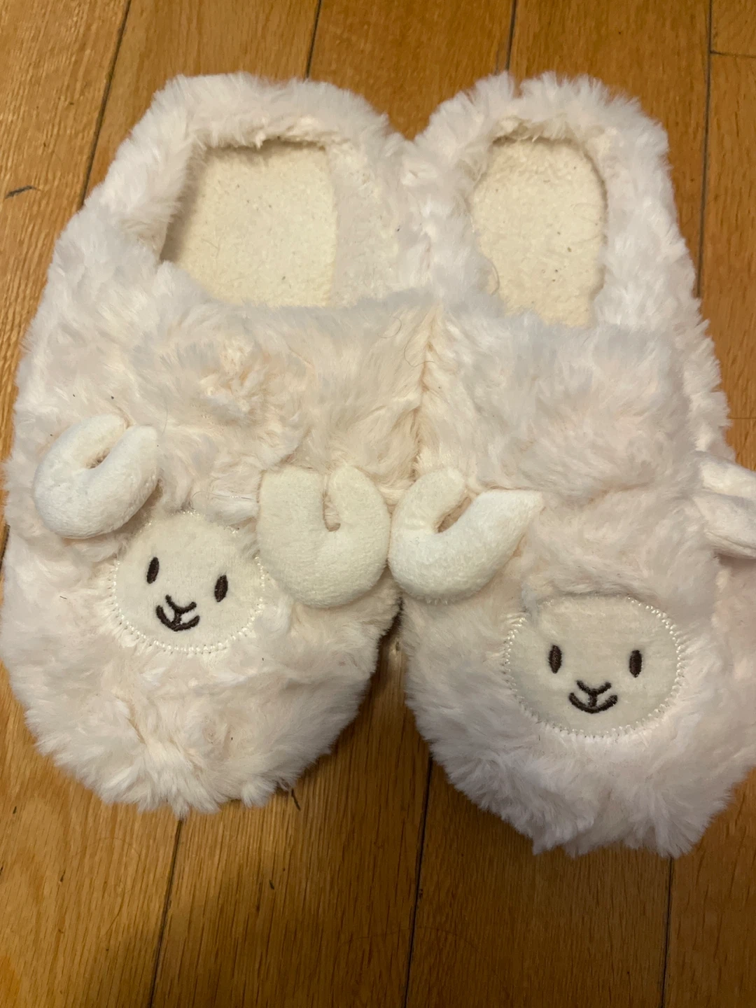 Super cute and cozy fuzzy sheep slippers! These are in size 40-41, which is approximately a women's size 9-10 in Canada. Perfect for keeping your feet warm on chilly days!