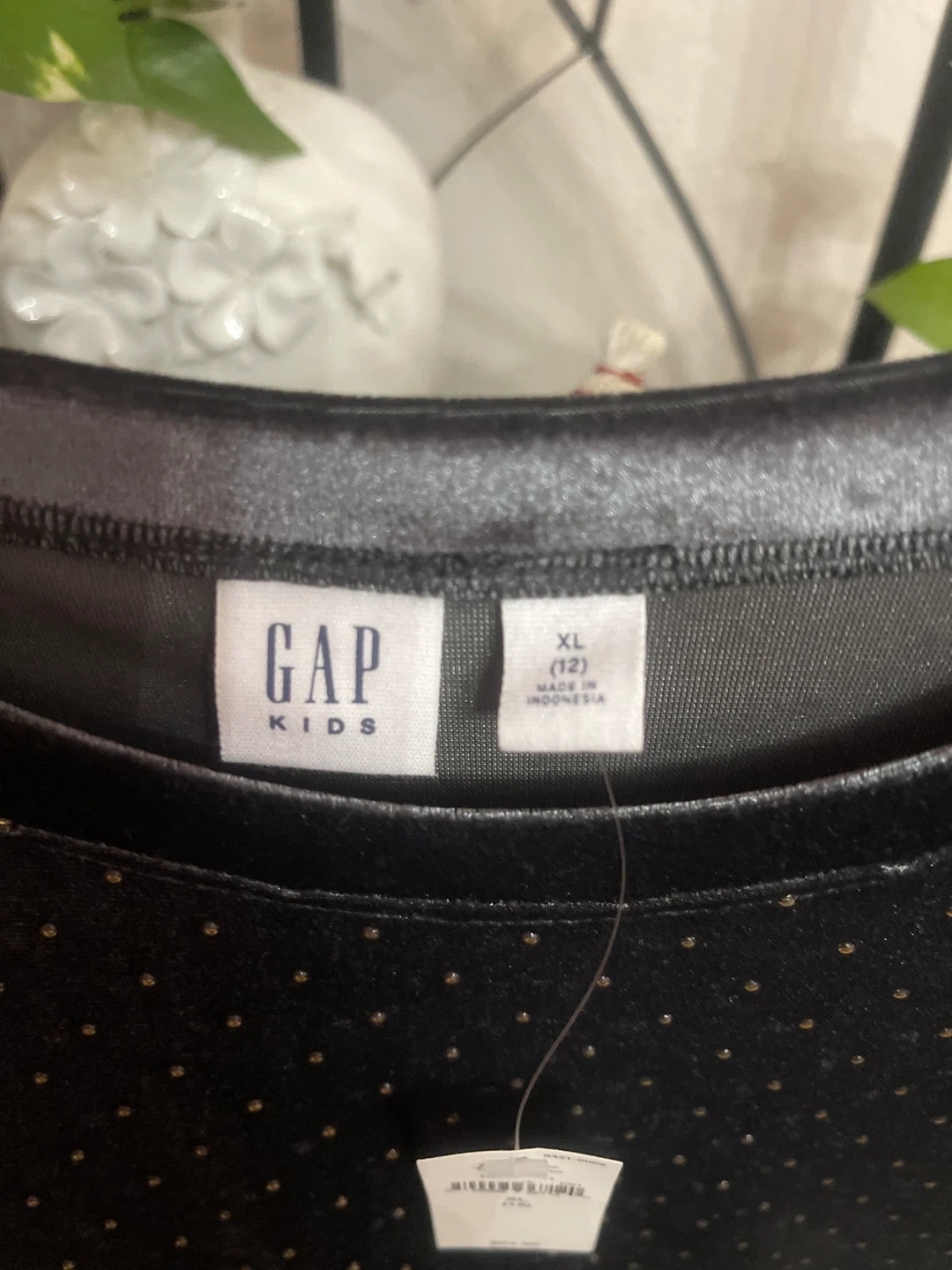 I'm selling a brand new Gap Kids dress! It's a black velvet dress with gold studs and long sleeves. It's a size XL (12) and originally retailed for $54.95.