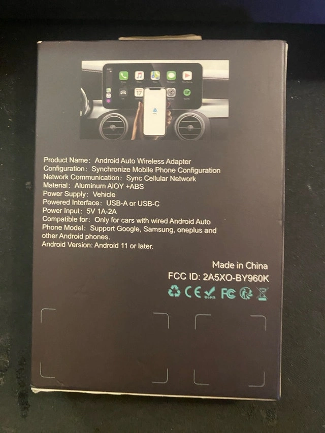 Upgrade your car's infotainment system with this Android Auto Wireless Adapter, designed to seamlessly connect your Android phone to your car's display, supporting Android 11 or later via USB-A or USB-C. This adapter supports Google, Samsung, OnePlus, and other Android phones, ensuring a broad compatibility for a hassle-free wireless Android Auto experience. This item is in new condition. Key Features: * Product Name: Android Auto Wireless Adapter * Network Communication: Sync Cellular Network * Material: Aluminum AIOY + ABS * Power Supply: Vehicle * Power Input: 5V 1A-2A * Android Version: Android 11 or later If you're seeing this ad, the Android Auto Wireless Adapter is still available—ready to transform your driving experience from wired to wireless in a snap! FULL REFUNDS AVAILABLE IP TO 30 DAYS AFTER SALE IF ITEM DOES NOT WORK.