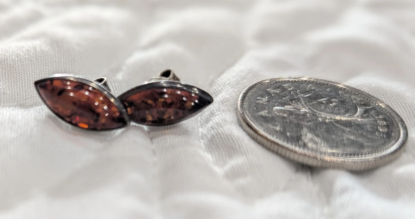 Helping my grandma sell pair of amber earrings with sterling silver posts. They are in great condition and ready to wear!
