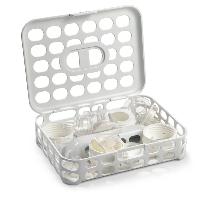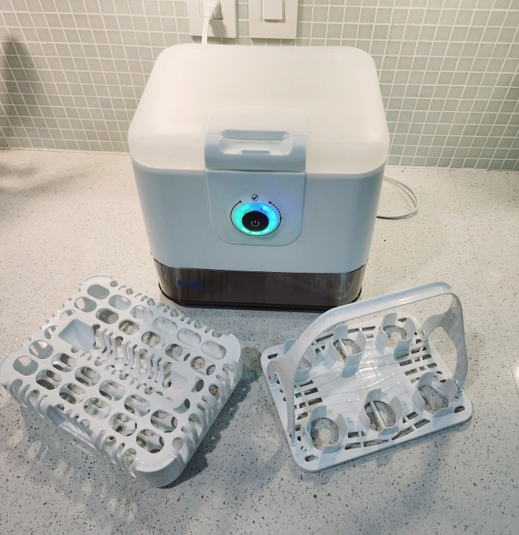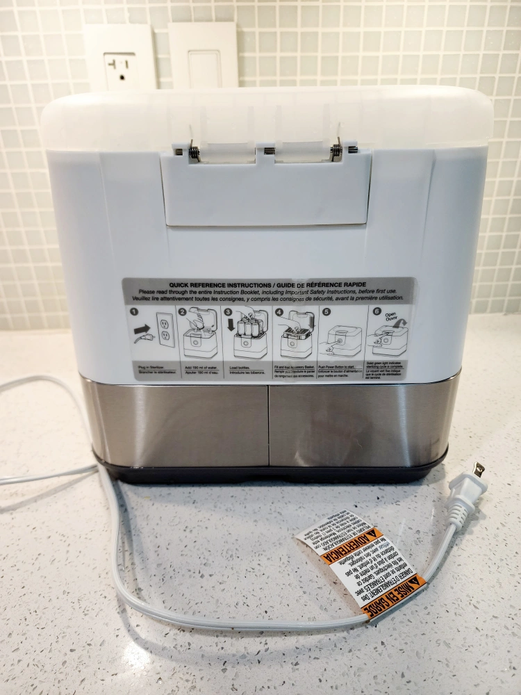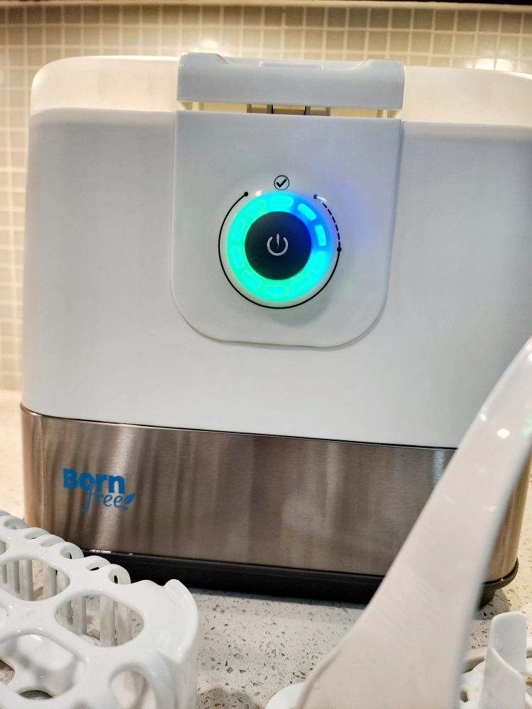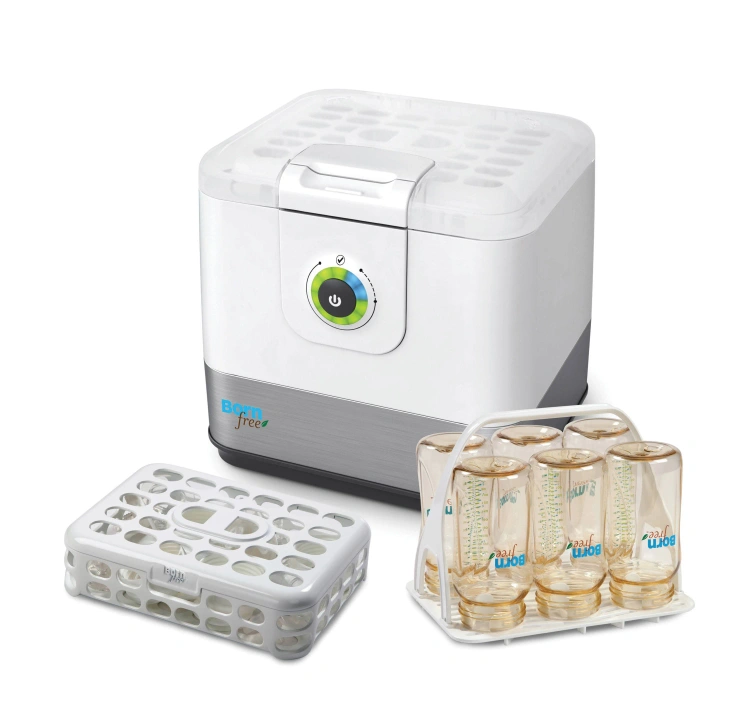 The Born Free Tru Clean Steam Sterilizing System steam kills 99.9%* of household bacteria. This all in 1 system includes sterilizer, dishwasher basket, and drying rack. The one touch control with lights indicates where you are in the 16 minute sterilization or 4 minute cool down process for added convenience. Convenient one handed lid release Hinged lid with steam vent safely releases steam
