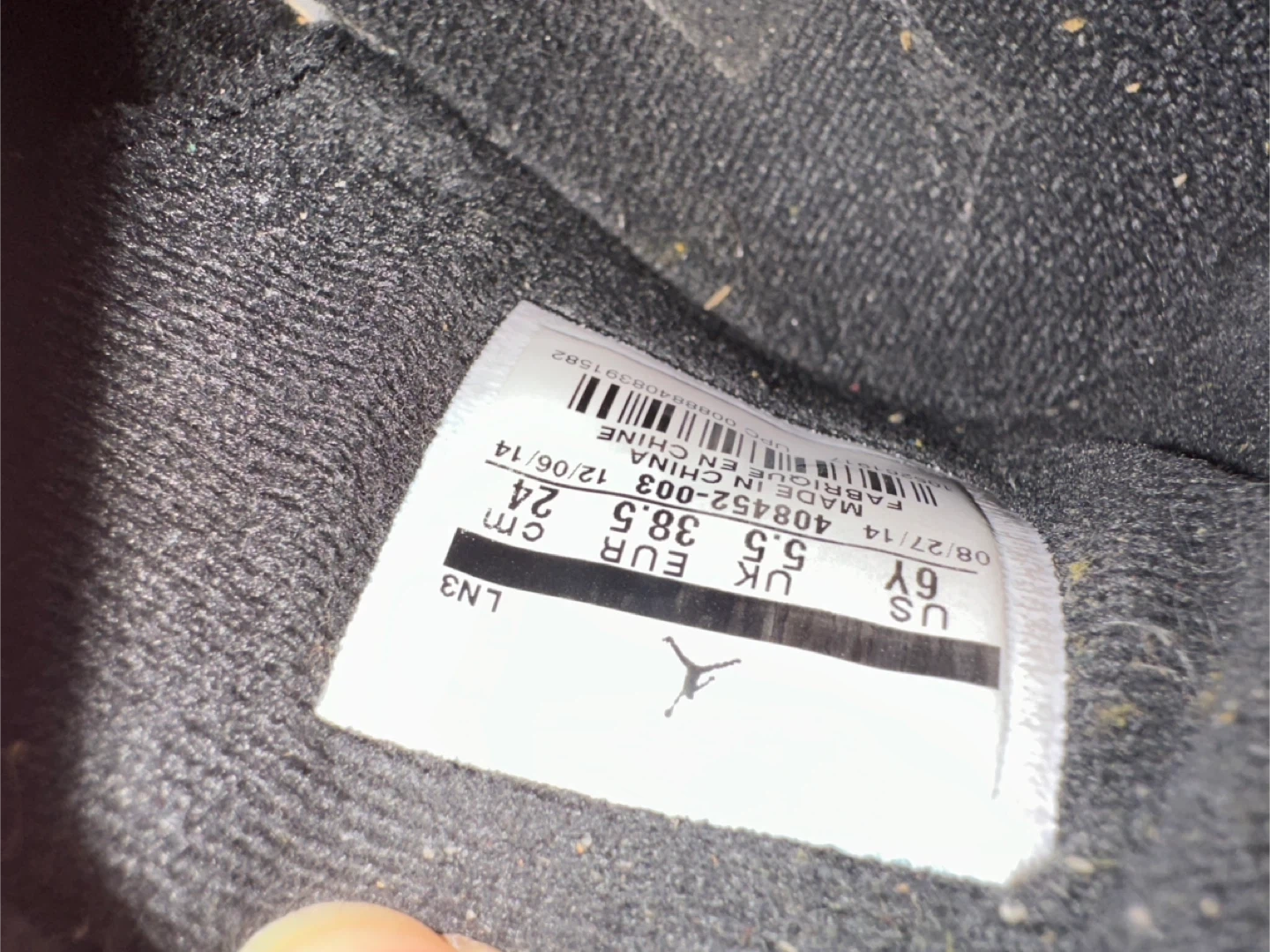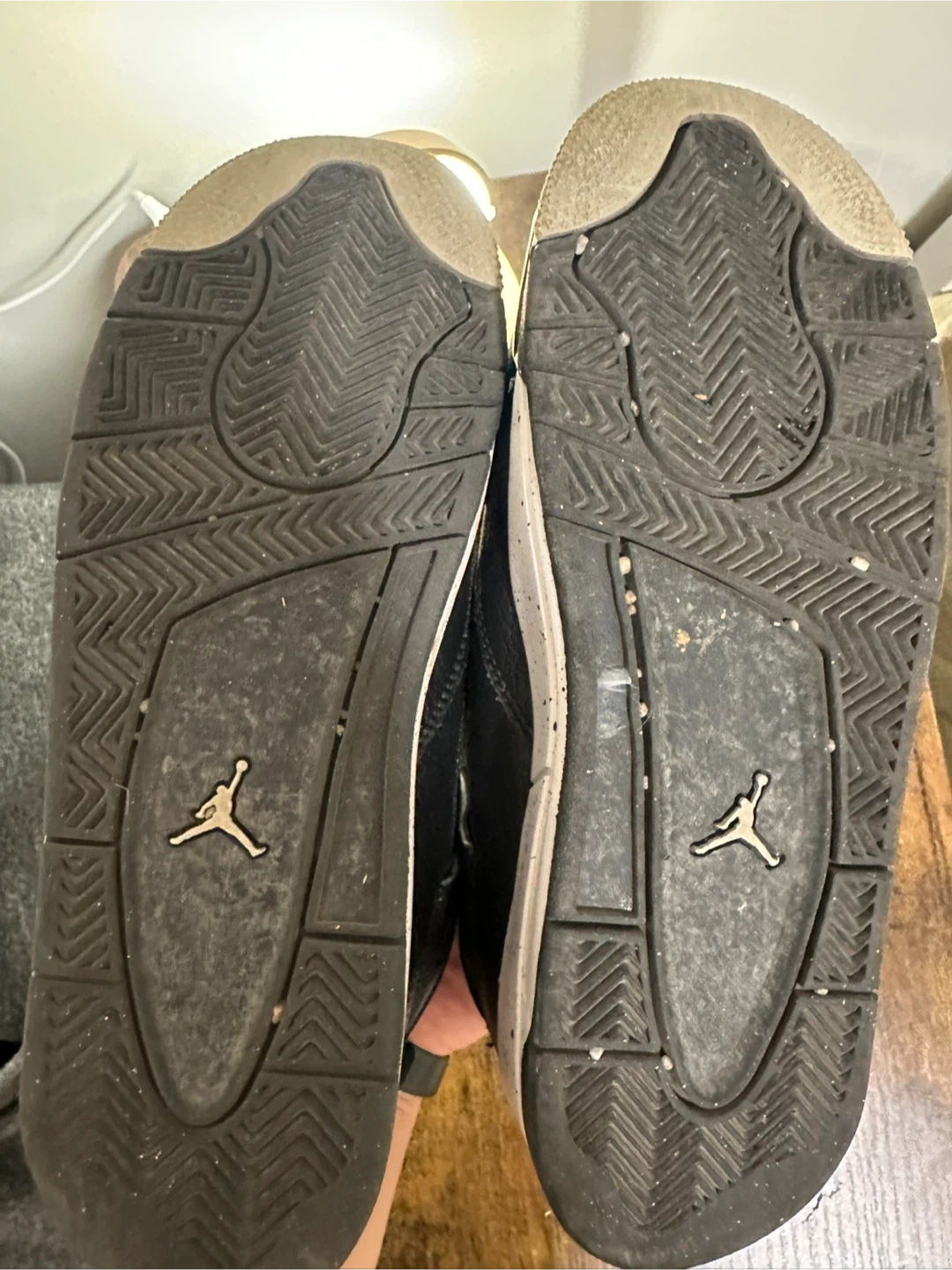 These are Black Air Jordan 4 Retro sneakers. Made with leather and mesh materials. US Youth size 6Y, UK 5.5, EUR 38.5. 24cm