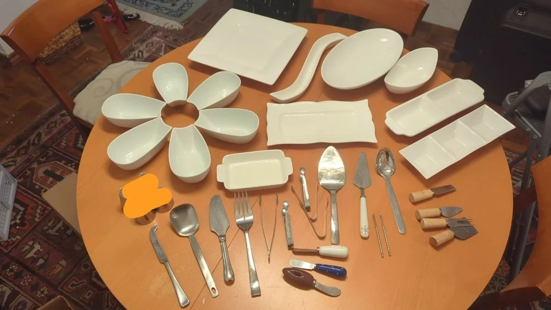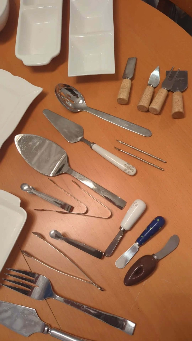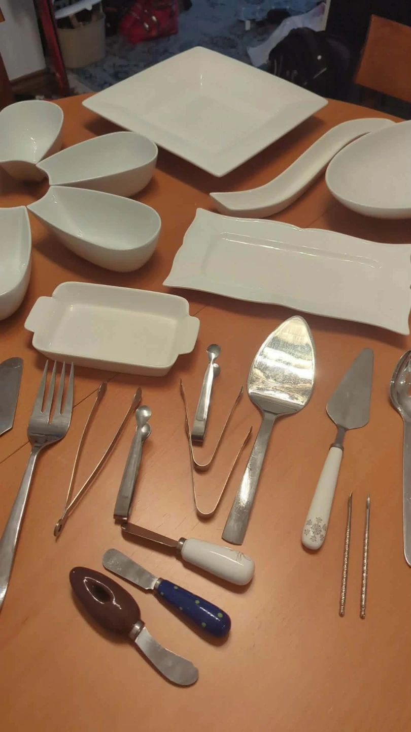Several serving plates in many sizes, various servingware, two sets of spreaders for cheese or charcuterie and more!