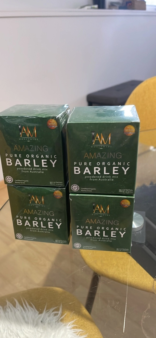 Four boxes of Amazing Pure Organic Barley. Powdered drink mix from Australia. Certified organic barley grass. 10 sachet per box