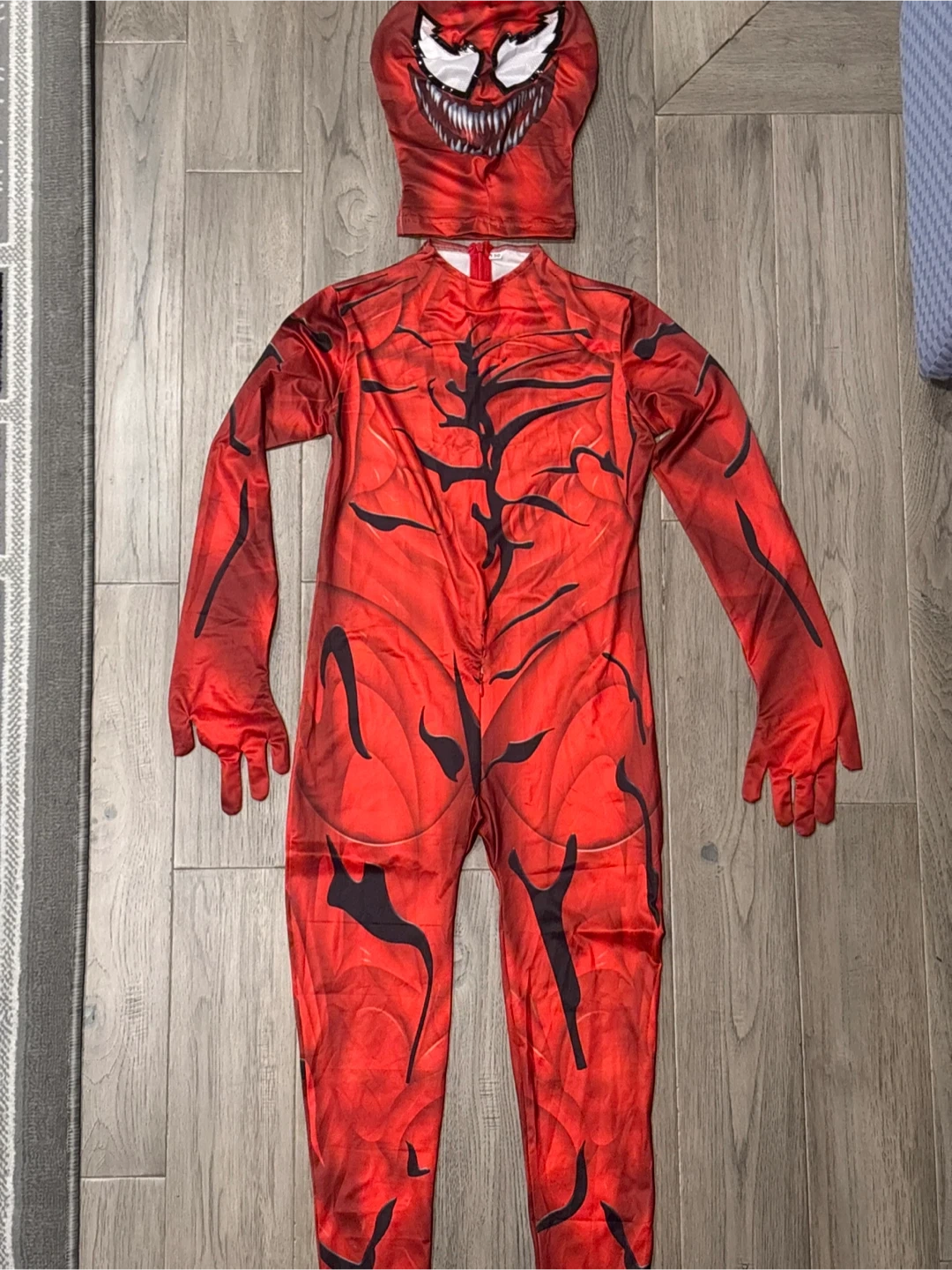 Selling a Carnage costume in size 150! It's in great condition and perfect for Halloween or dress-up. The costume includes the full body suit and mask.