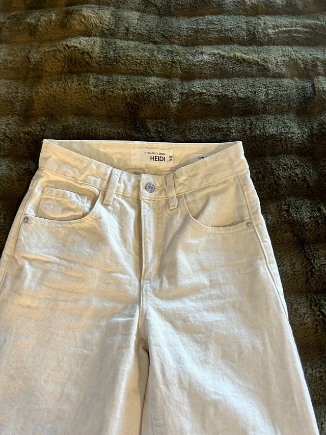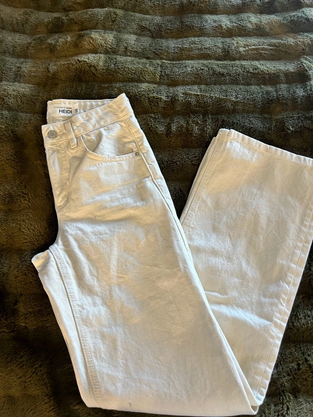 Selling a pair of Dynamite Heidi Jeans in size 00/24, worn only once and in excellent condition! These stylish jeans feature a comfortable fit and a trendy look, perfect for any casual occasion. Brand: Dynamite, Style: Heidi, Size: 00/24, Condition: Worn once. Asking $35. If the ad is up, the item is available.
