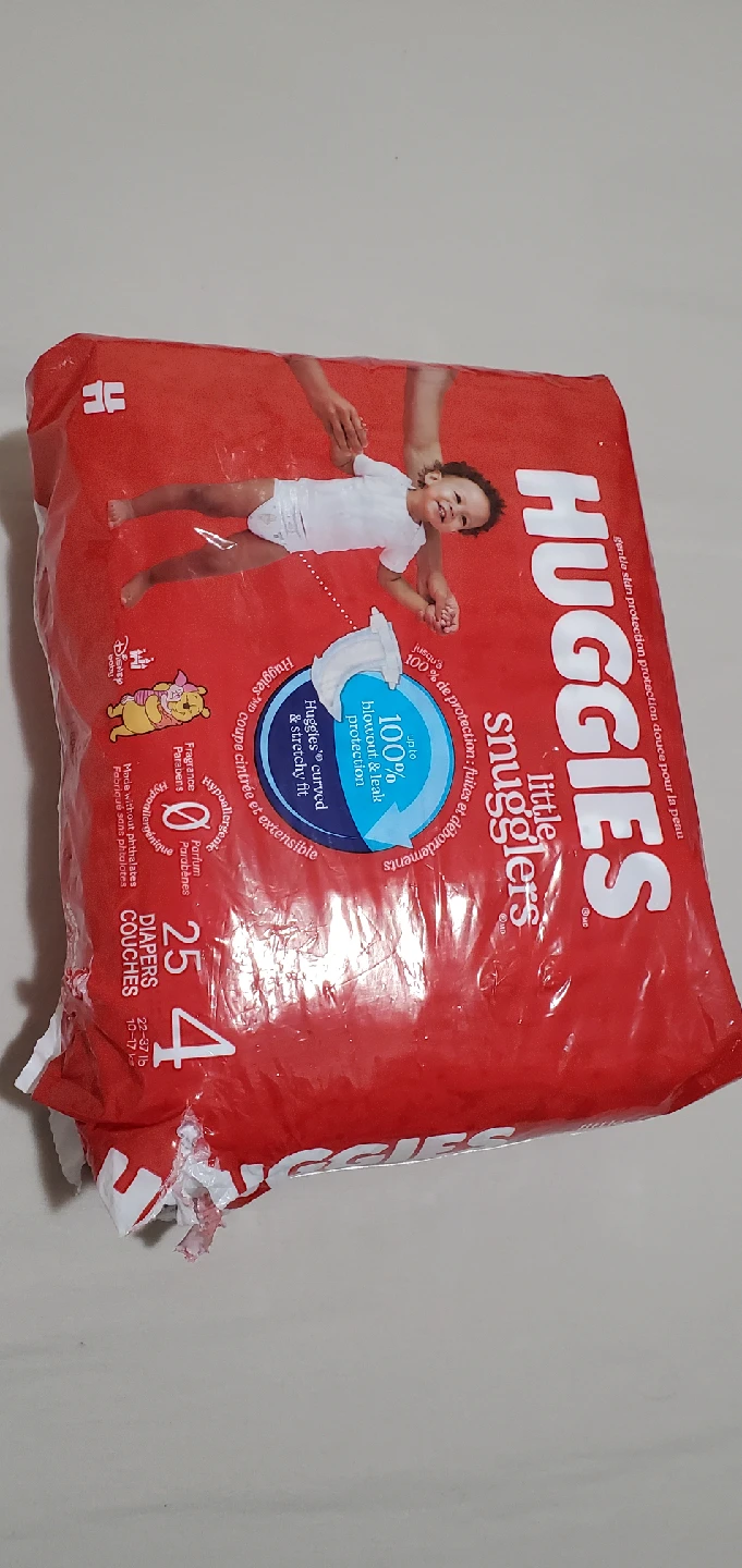 HUGGIES: Package opened, 4 diapers used; total 21 count - Size 4. Price $8