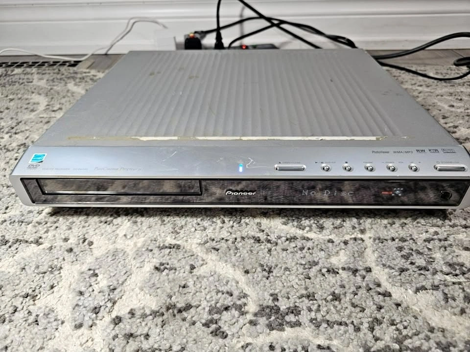 Pioneer DVD/CD receiver in good working condition. Slim design with optical audio and component video outputs. Fully tested and working. Has some scratches on the top.