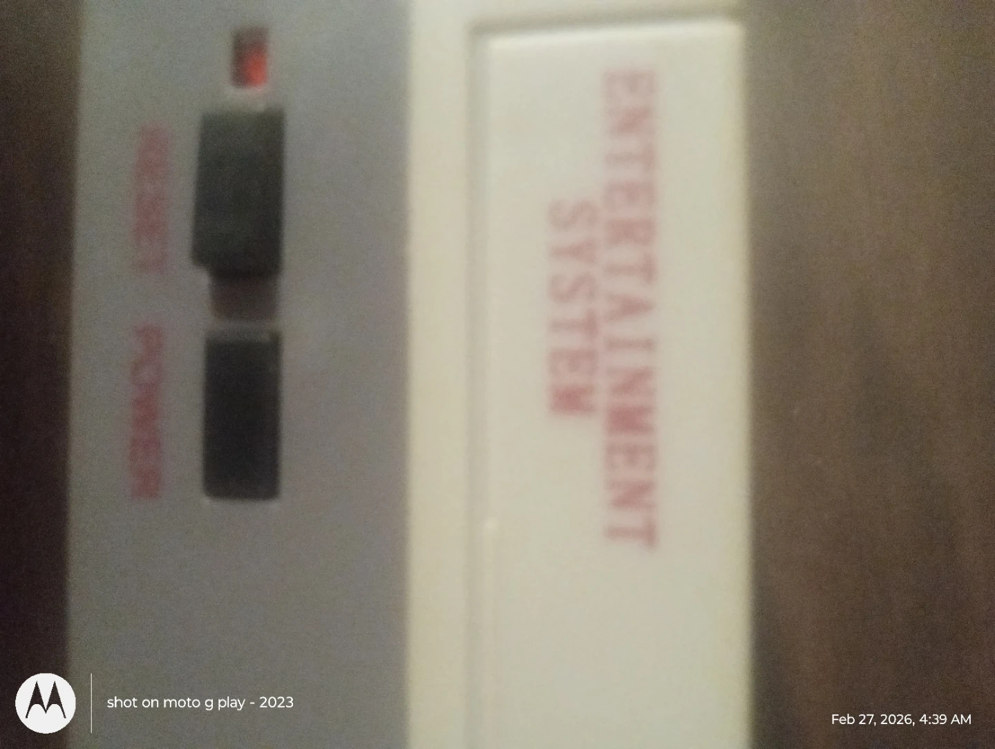 This is a Nintendo Entertainment System console. It has a power and reset button. It includes ports for controllers.