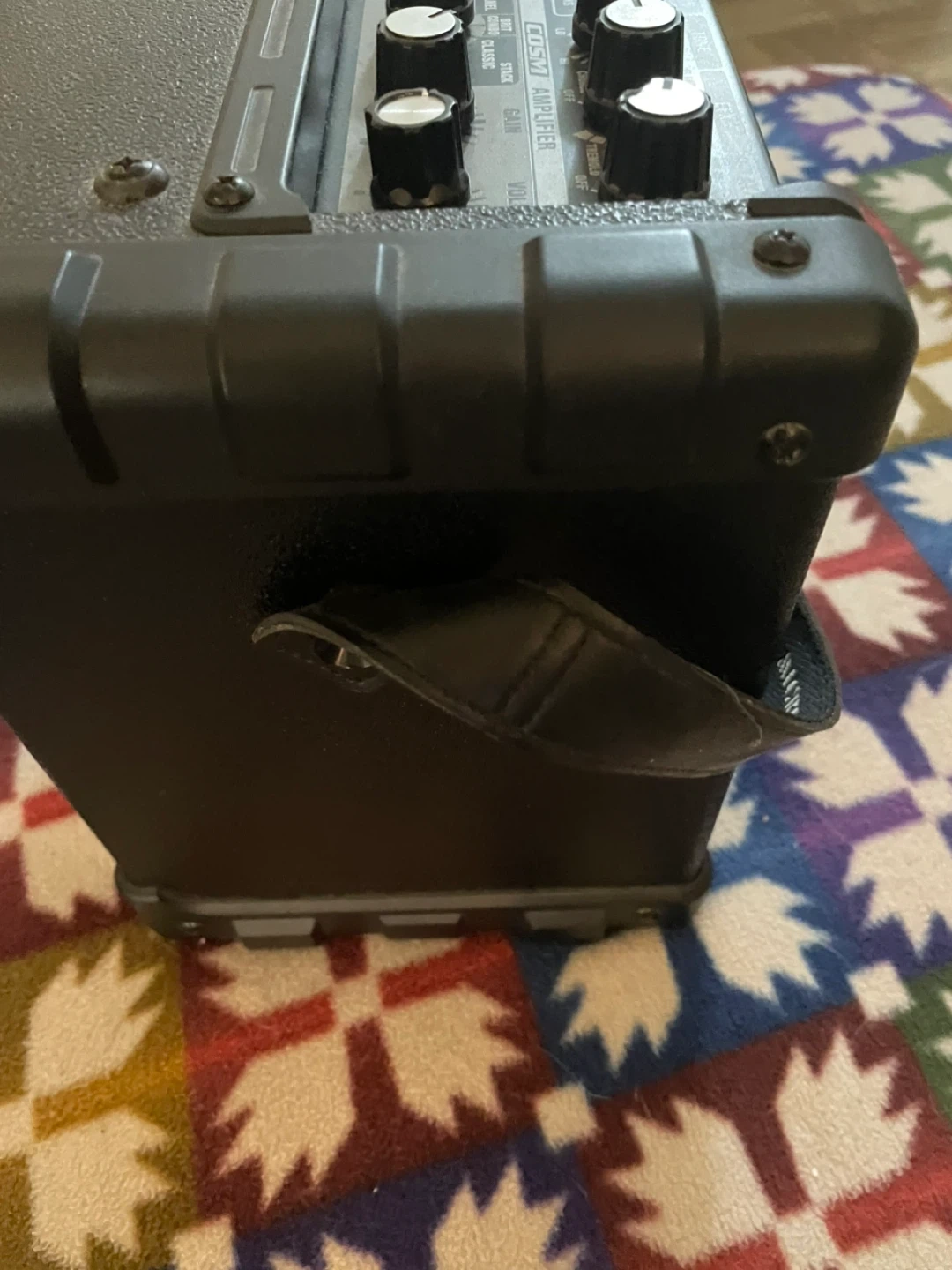 This small beast is battery operated or using 9 volt adapter, great for home rehearsals, street performances, small venue shows. The delay/ reverb dialing button is chipped a bit but it doesn’t affect the performance and the amp is in very good used condition.( please see pics)