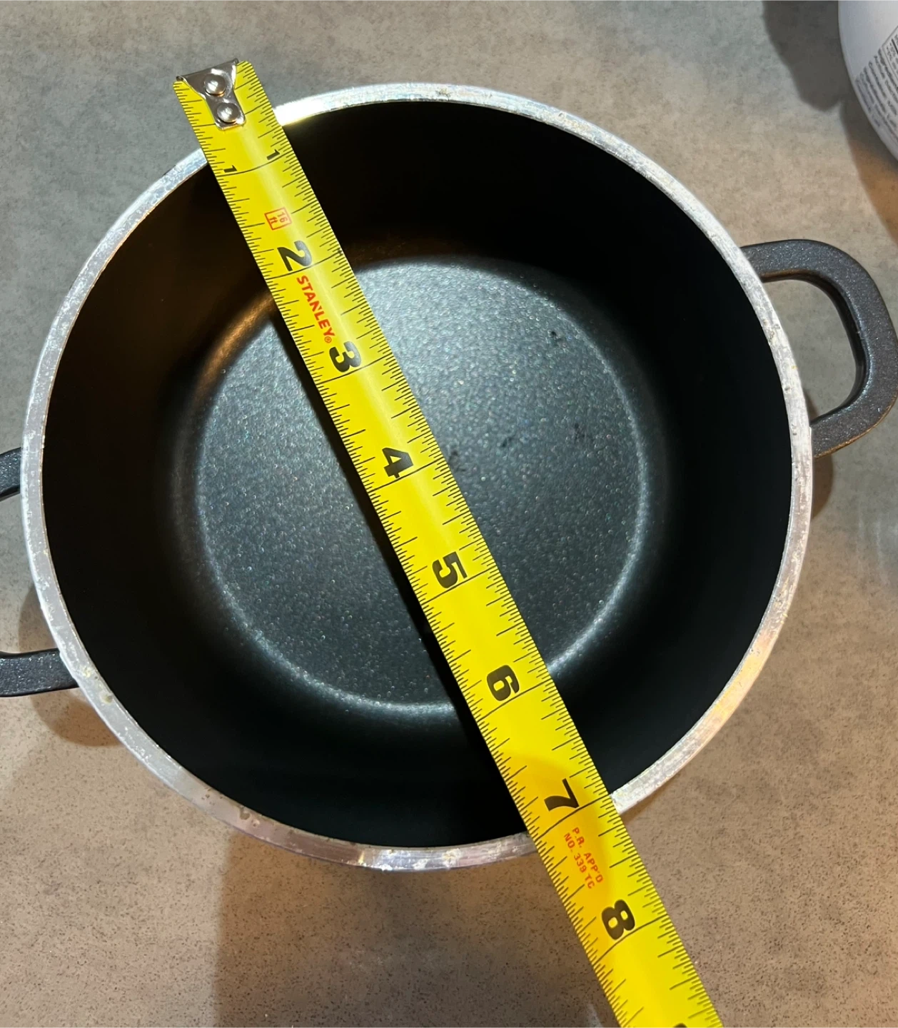 This is a FORTE non-stick stock pot with two handles. It's suitable for gas, electric, and glass ceramic cooktops. The interior diameter is approximately 8 inches.