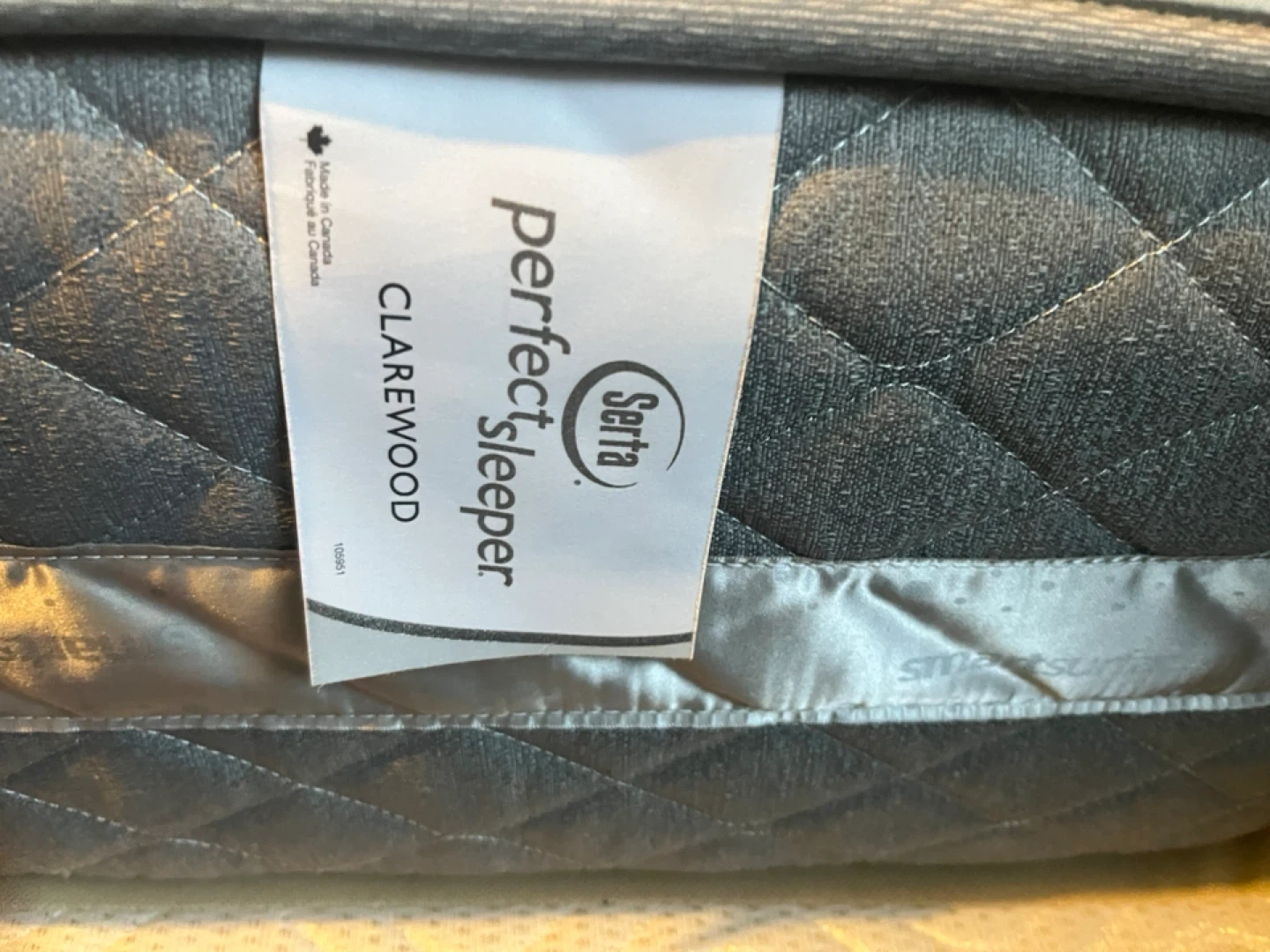This Serta Perfect Sleeper Clarewood mattress offers quilted comfort. Comes with box spring.It's made in Canada. This mattress is suitable for a double size bed frame.
