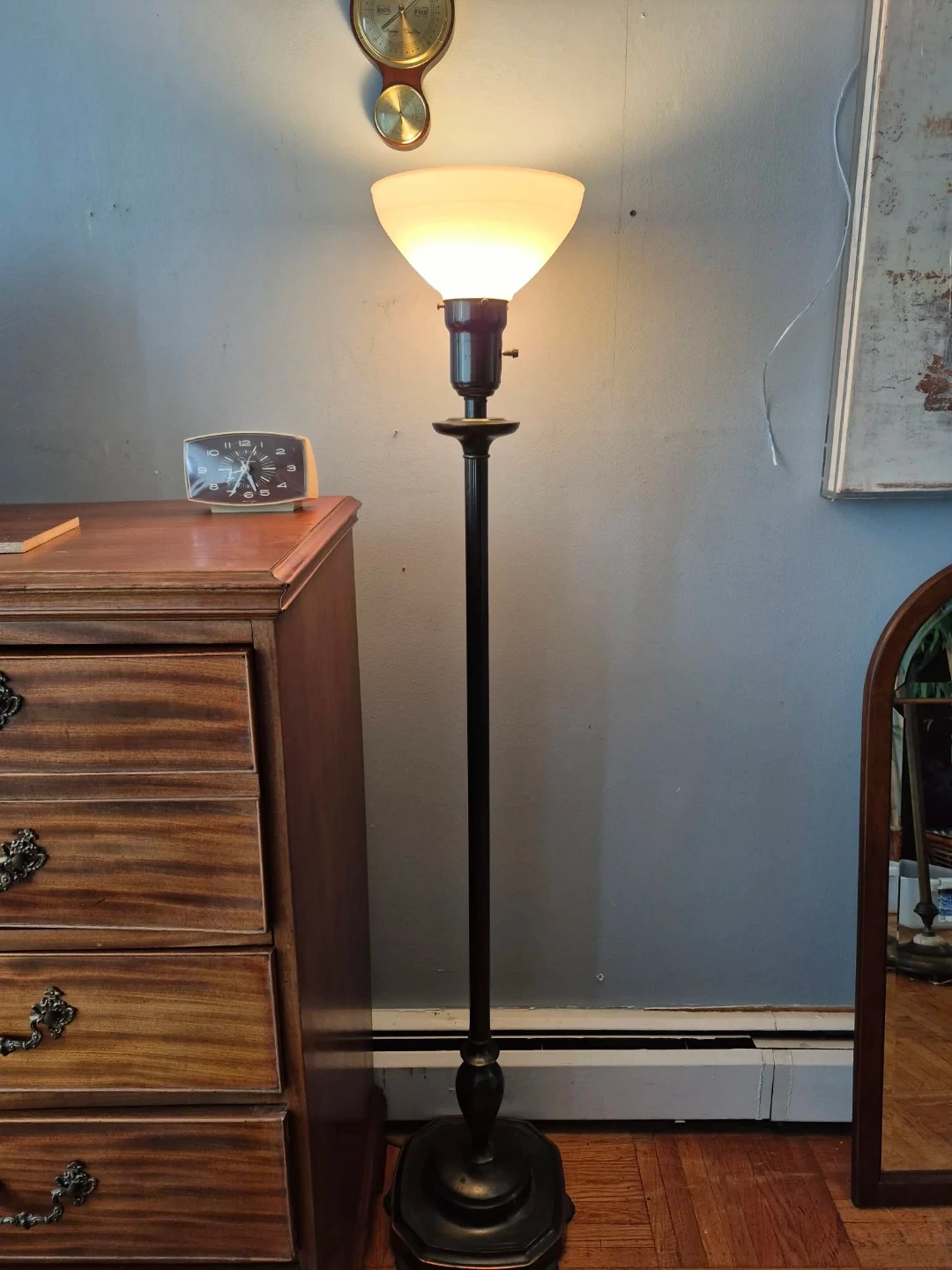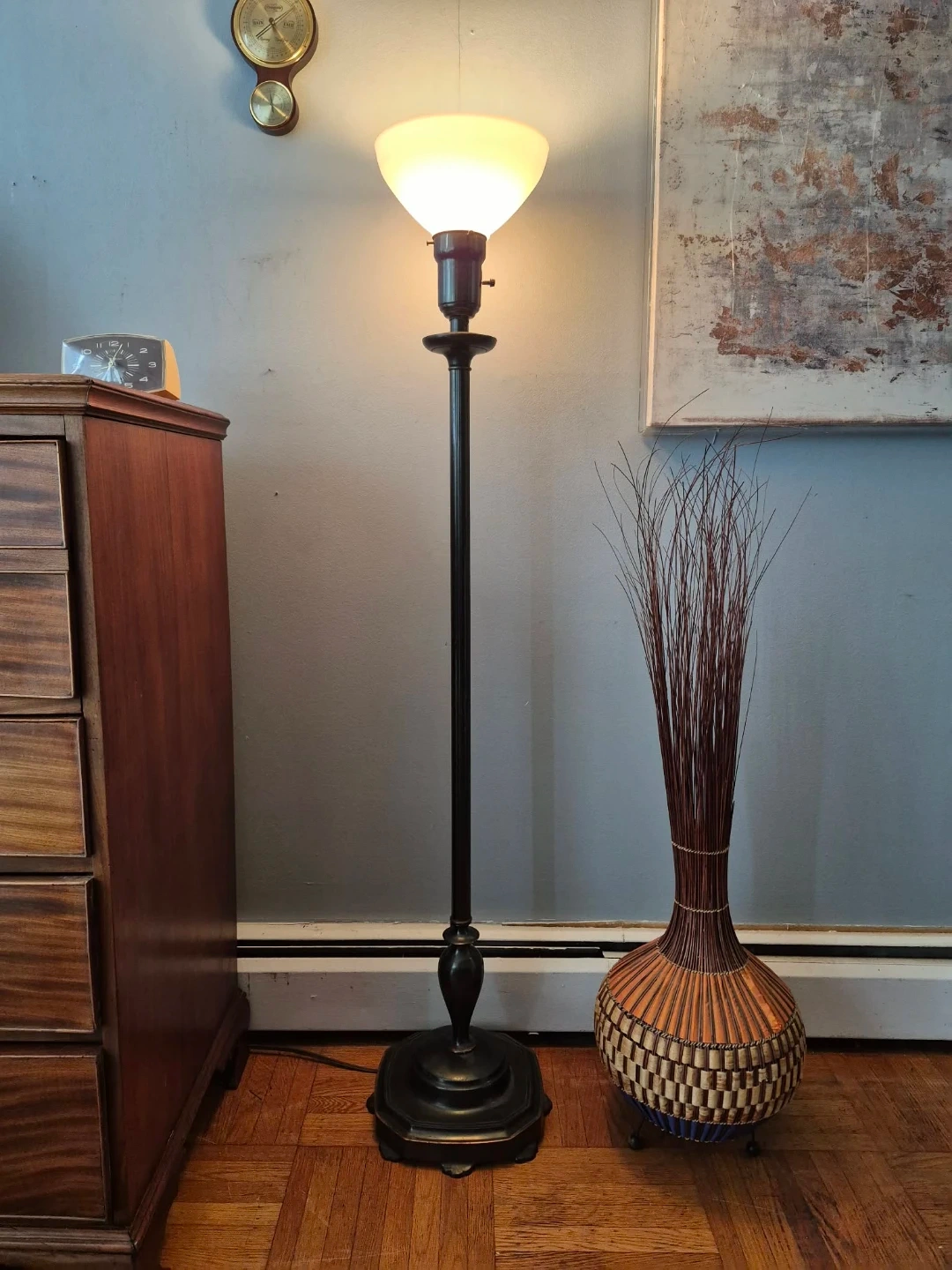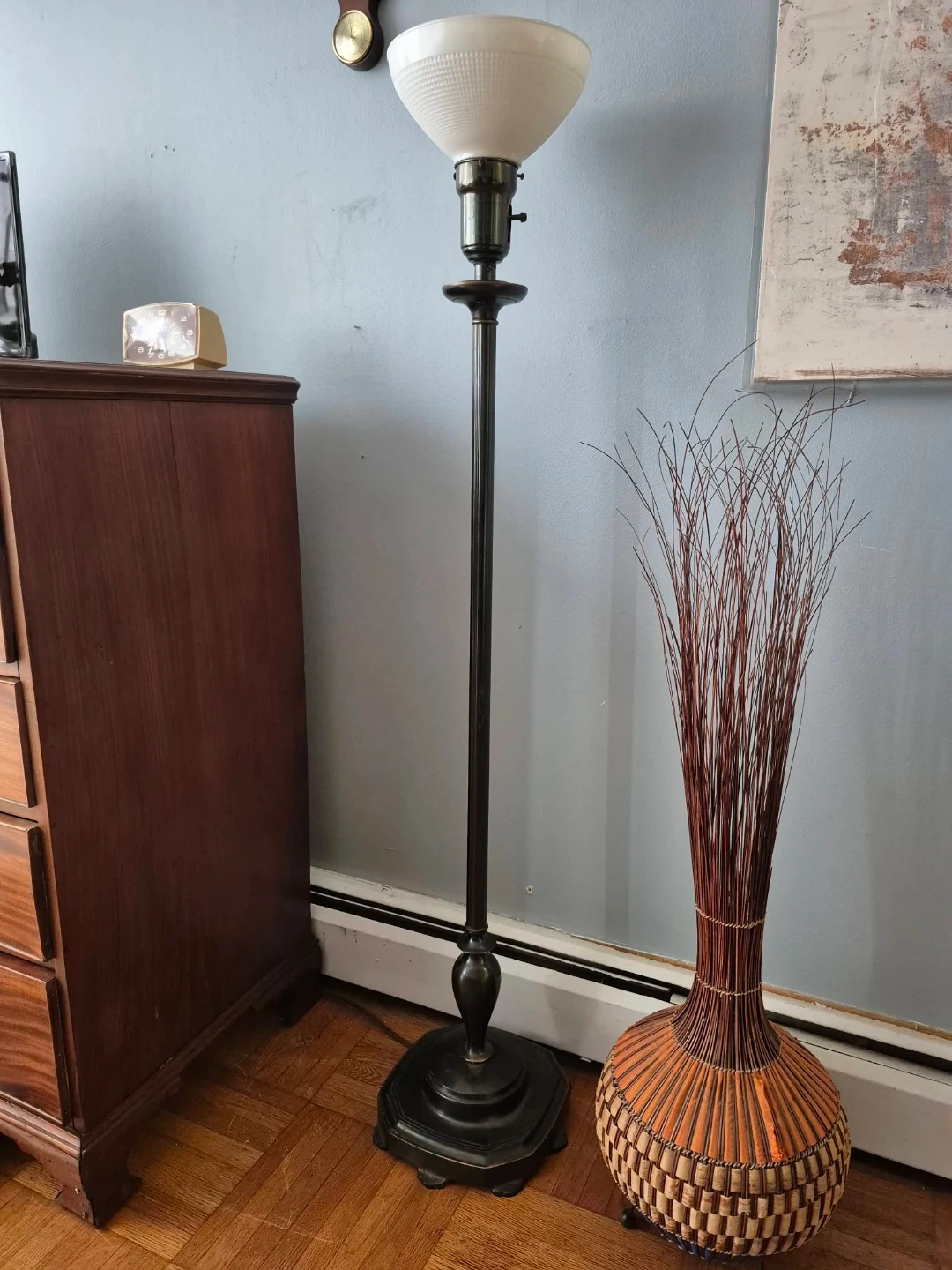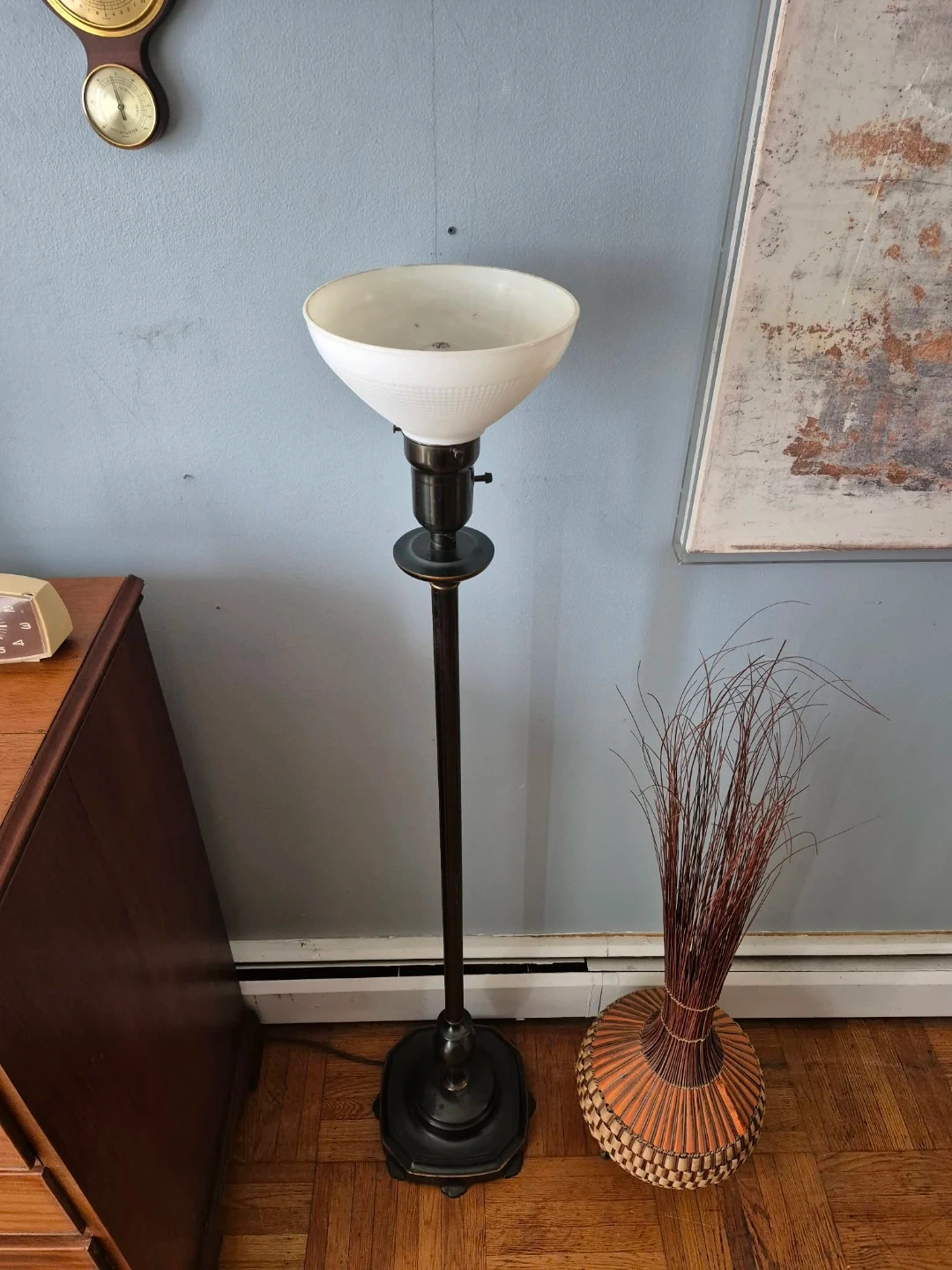 Vintage Metal Floor Lamp With Milk Glass Shade (Delivery Available)