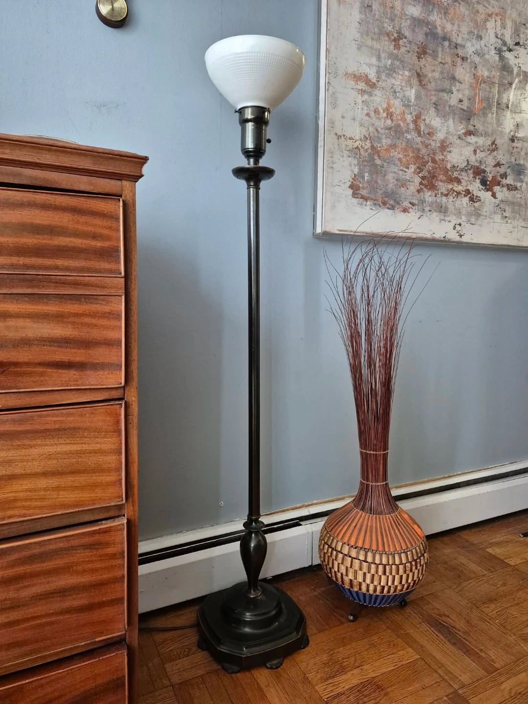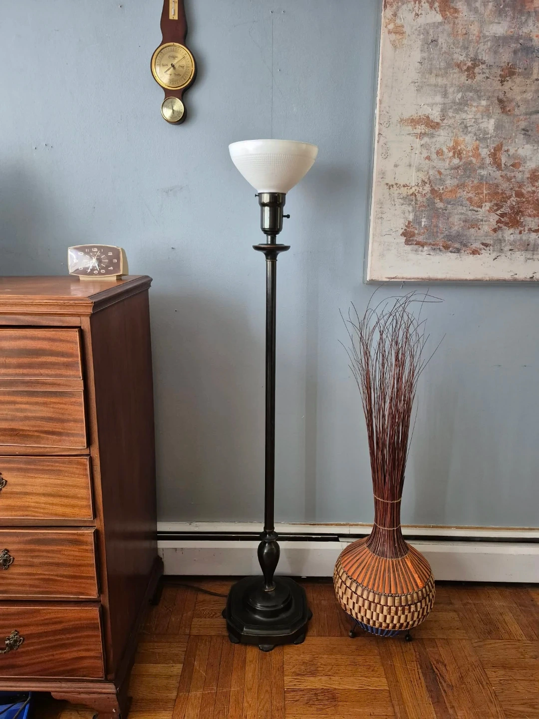 Vintage Metal Floor Lamp With Milk Glass Shade (Delivery Available)