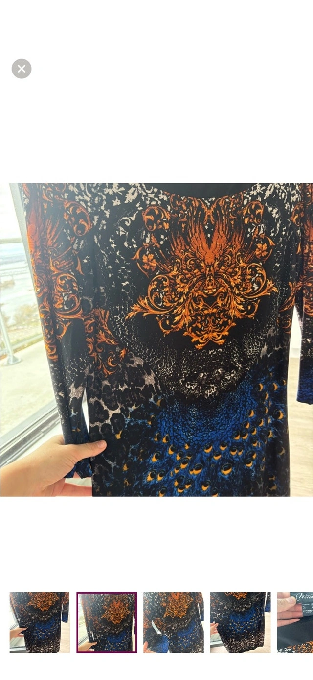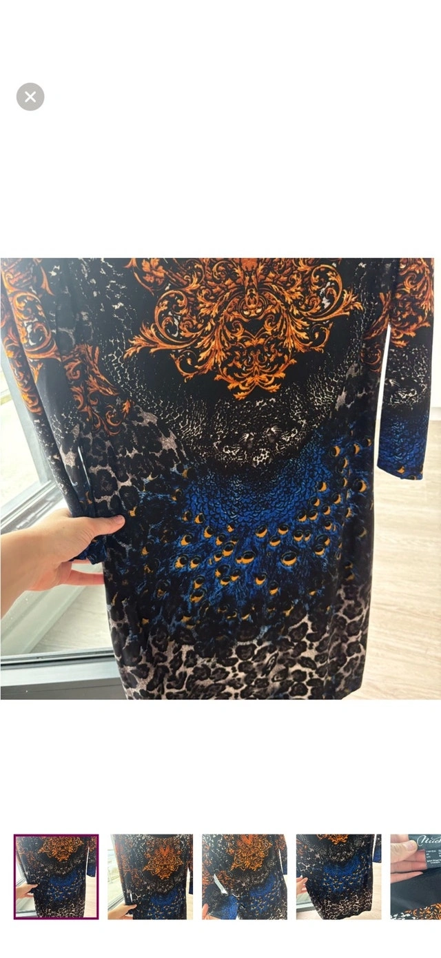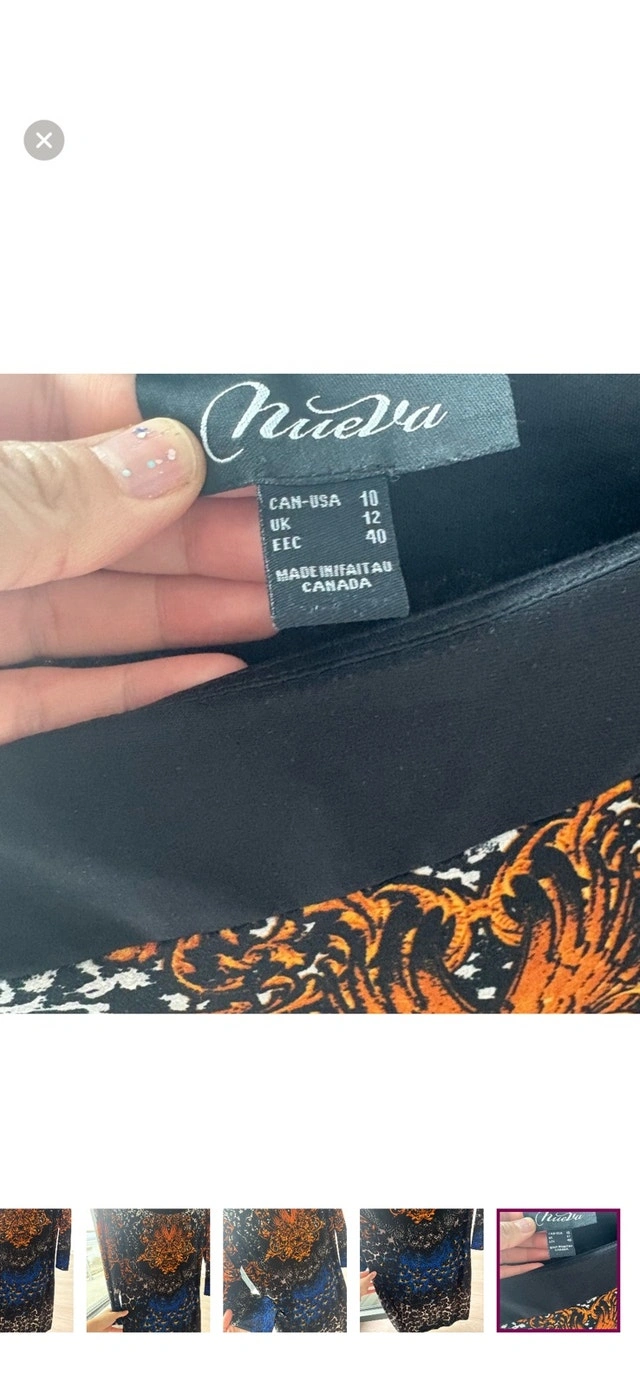 Add some flair to your wardrobe with this striking Nuevai dress, showcasing a vibrant orange and blue pattern. This eye-catching piece is in used good condition, ready for its next fashionable adventure. Size: Large (12-14) Brand: Nuevai. If you're seeing this ad, it's still available!