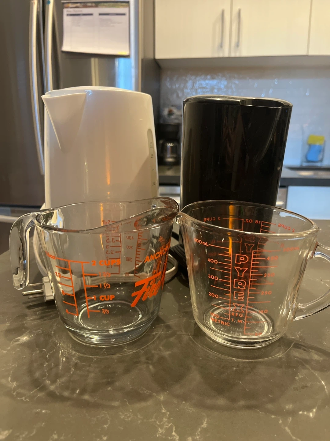 2 Kettles & 2 Glass Measuring Cups