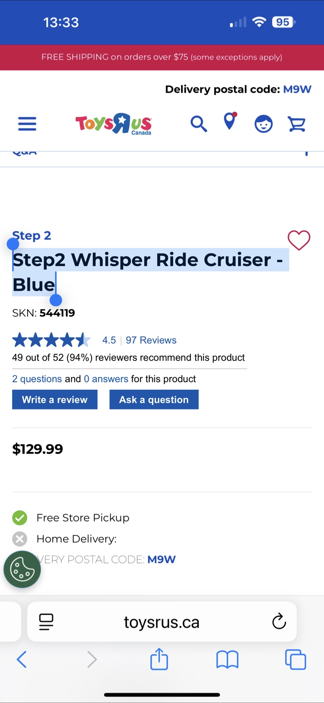 Bought last year, my kid grow out of it. It is in very good condition, everything works. Pick up only