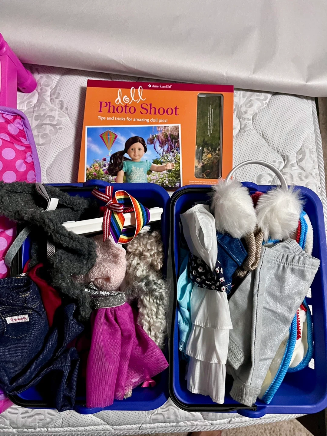 Selling 2 American Girl dolls, accessories and two beds. Includes clothing, shoes, hair accessories, and a 'Photo Shoot' tips and tricks book.