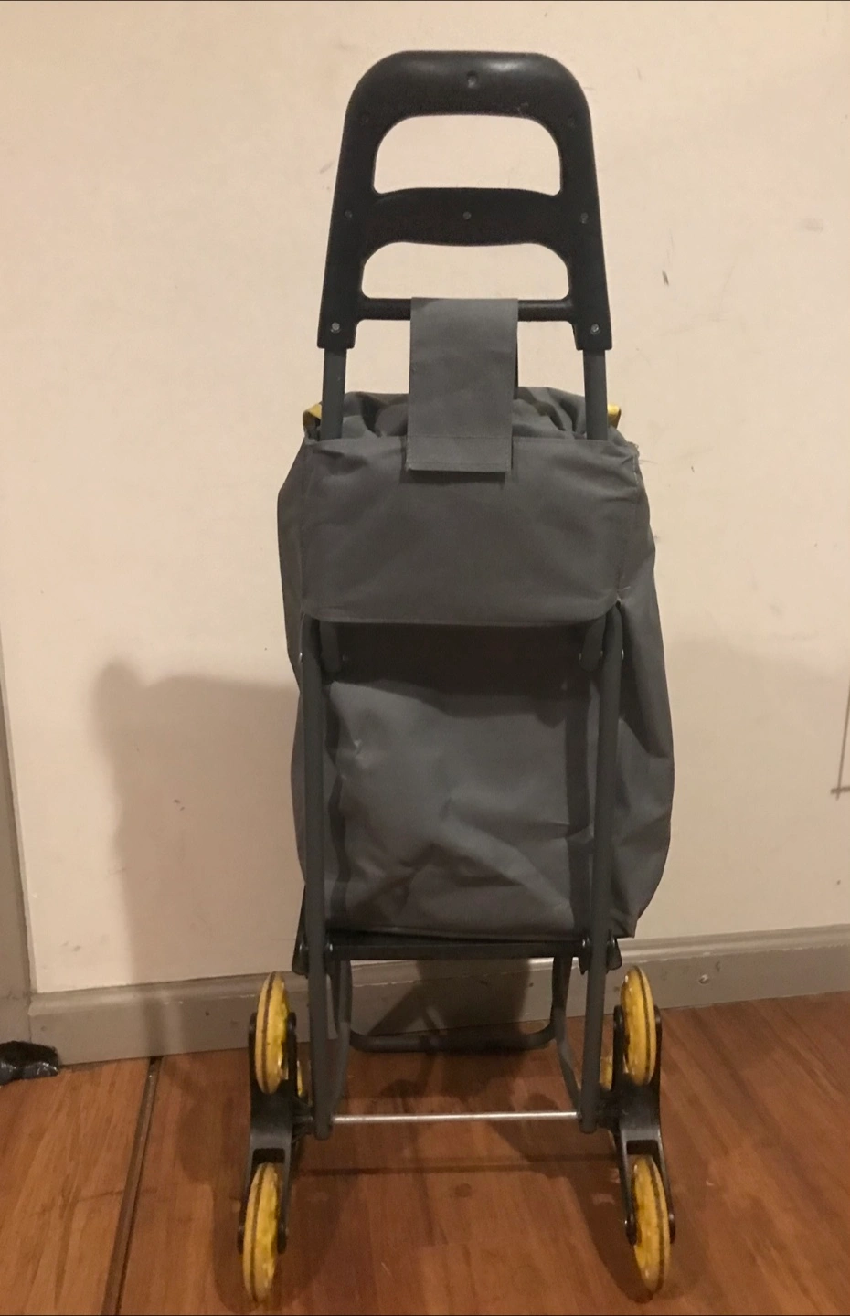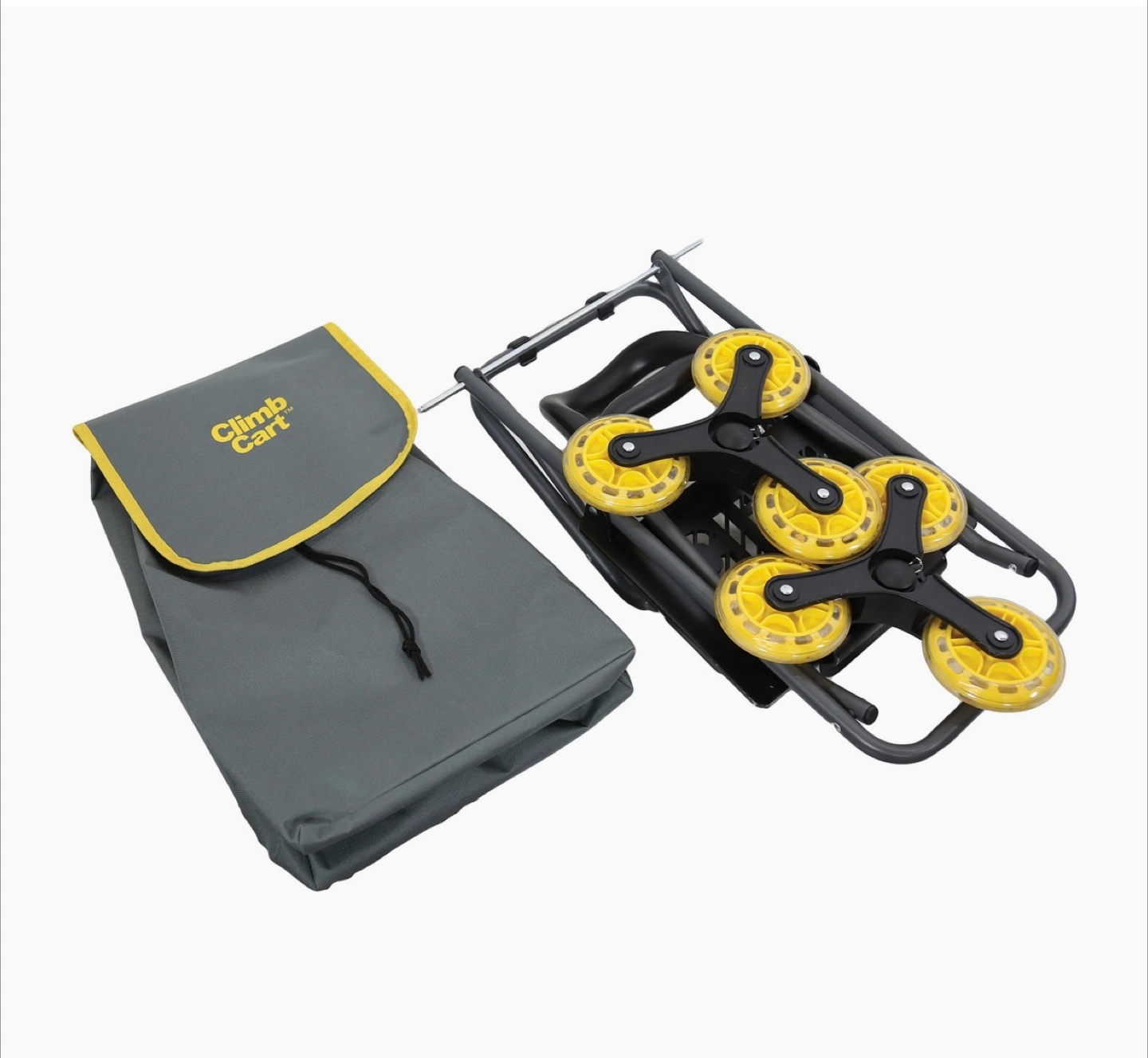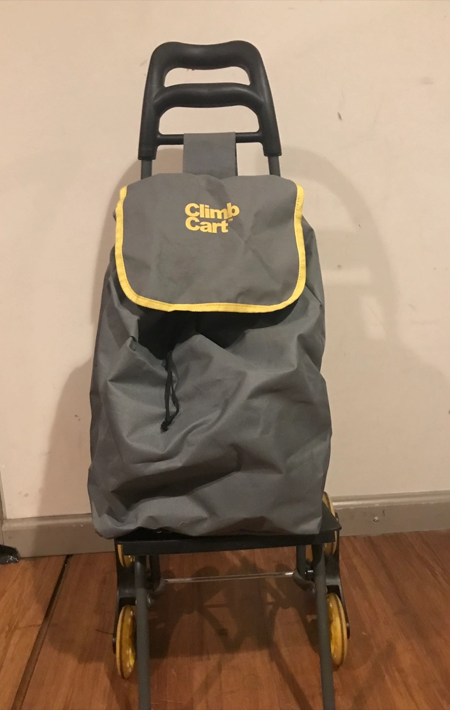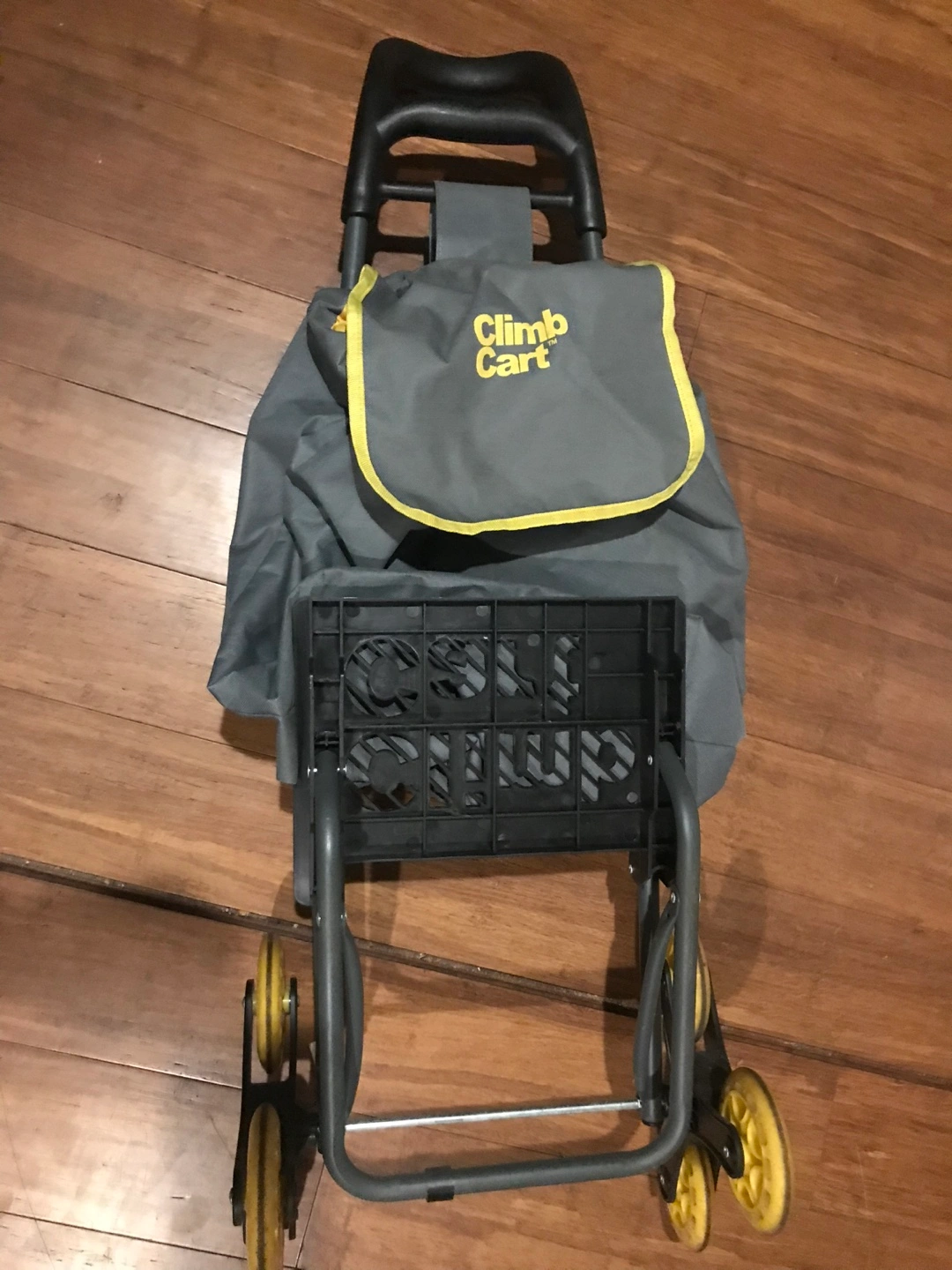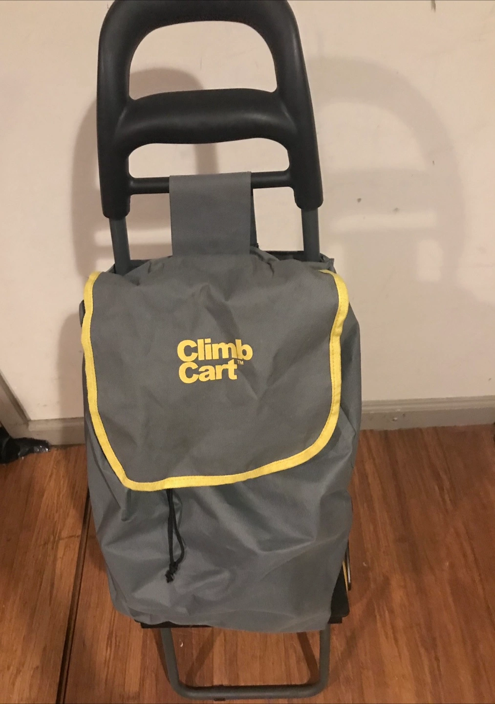 The climb cart is a versatile shopping cart by Bulbhead. This shopping cart makes shopping and transporting items easy for anyone who needs to do so. This folding cart with its 6 - wheel design can hold up to 75lbs of weight. The Climb Cart is designed to roll up and down stairs effortlessly. Lightweight and can fold flat to store. Product dimension is 11.6 x 20.26 x 10.62 inches. In excellent condition and great shape. From smoke pet free and healthy home.