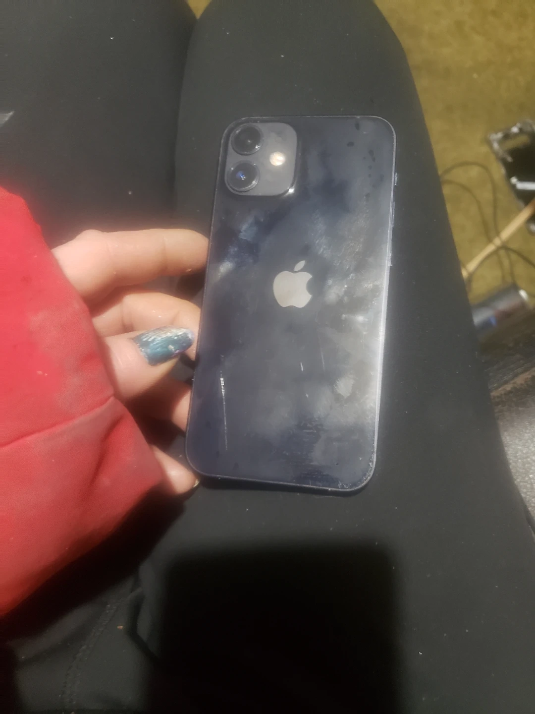 It's an Apple iPhone 12 Mini smartphone. It has a 5.4-inch Super Retina XDR display. This phone comes in a sleek black colour.