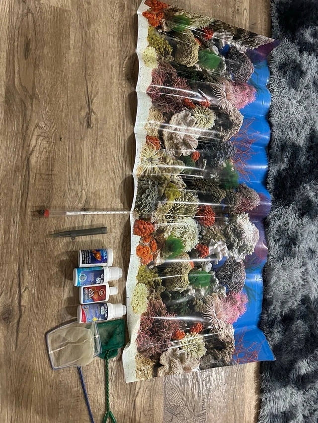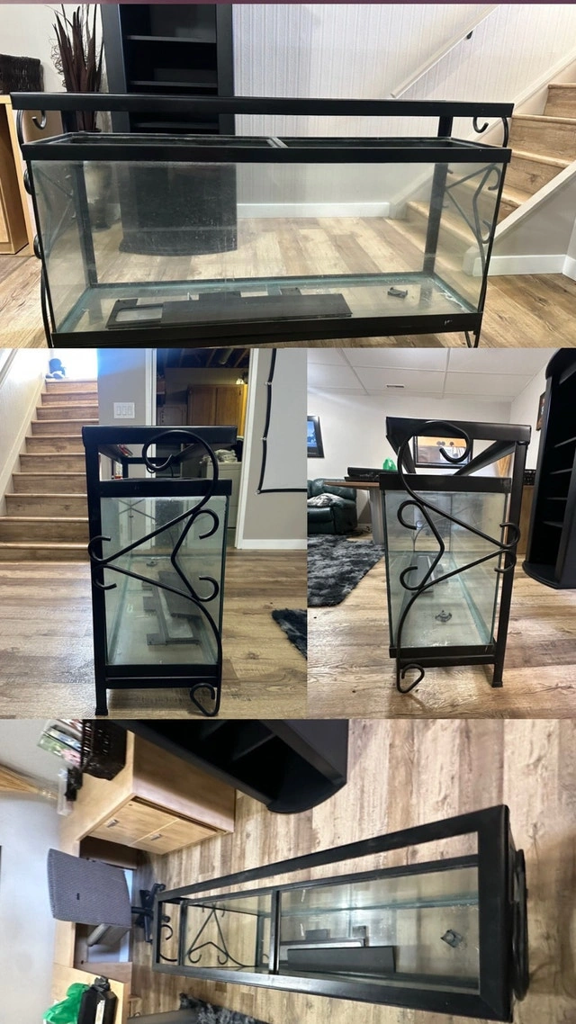 Selling a complete used 52-gallon fish tank setup, ready for a new home! Includes the tank with a decorative stand, gravel, an Aqua Clear 20 power filter, an Aqua-Tech filter (20-50 gallon), a heater, and several decorative rock and coral formations. Also includes a background, nets, lights, and some water treatment solutions to get you started. This setup has been used and shows signs of wear. It's perfect for someone looking to get into fishkeeping without buying everything brand new! Asking $600.00, open to negotiation. If the ad is up, the tank is still available. Let's find this aquatic abode a new home!