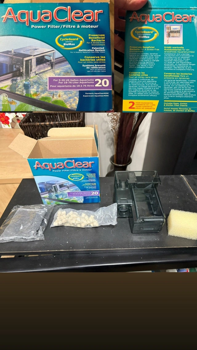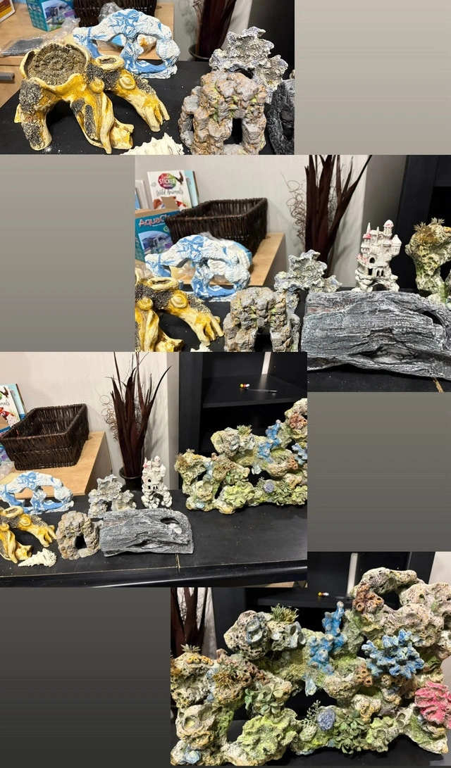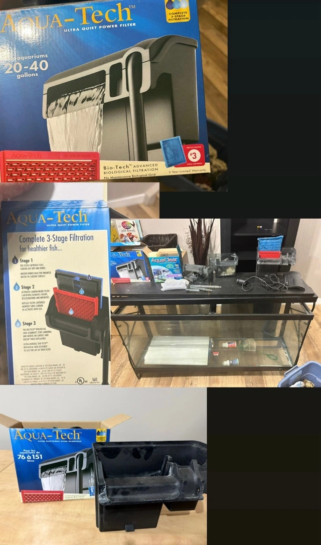 Selling a complete used 52-gallon fish tank setup, ready for a new home! Includes the tank with a decorative stand, gravel, an Aqua Clear 20 power filter, an Aqua-Tech filter (20-50 gallon), a heater, and several decorative rock and coral formations. Also includes a background, nets, lights, and some water treatment solutions to get you started. This setup has been used and shows signs of wear. It's perfect for someone looking to get into fishkeeping without buying everything brand new! Asking $600.00, open to negotiation. If the ad is up, the tank is still available. Let's find this aquatic abode a new home!