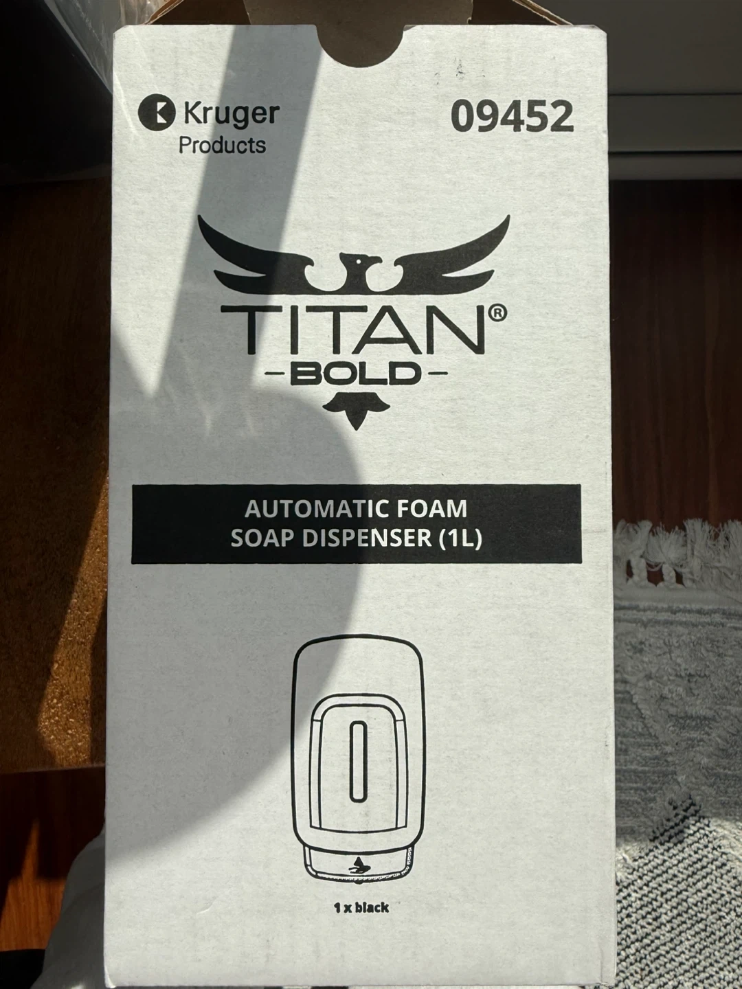 Brand new, never used automatic foam soap dispenser. It's a 1L capacity model in black. Includes original packaging and instructions. Great for keeping hands clean with its touchless operation!