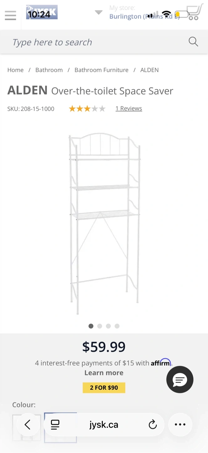 ALDEN White Over-the-Toilet Space Saver Shelf
