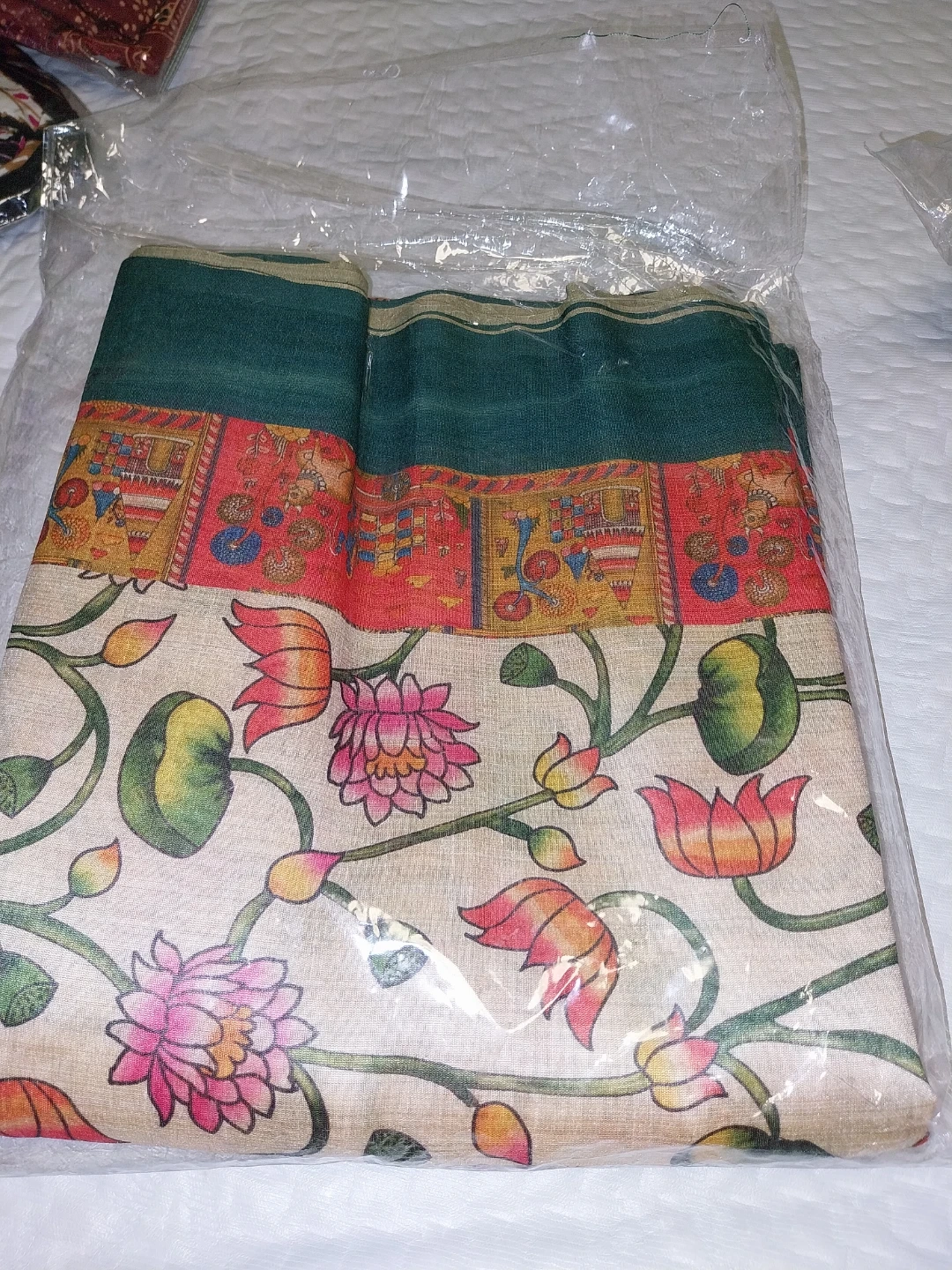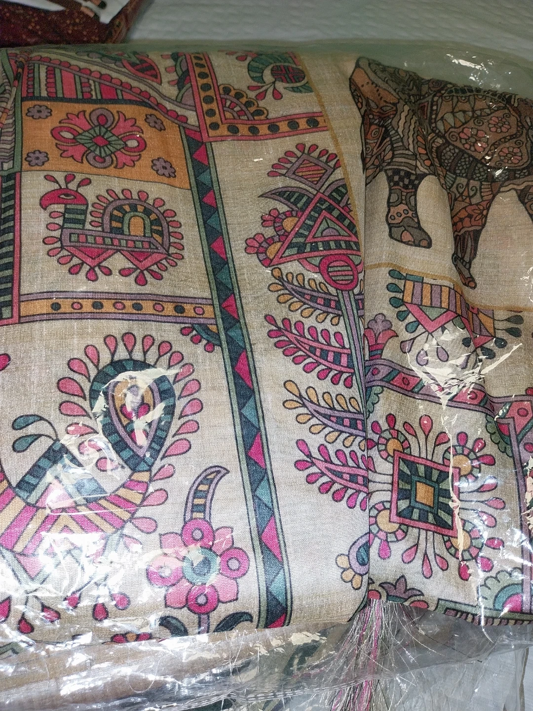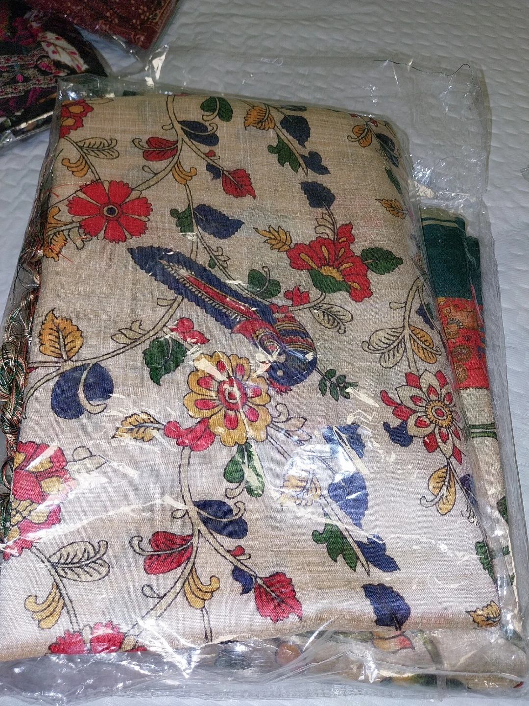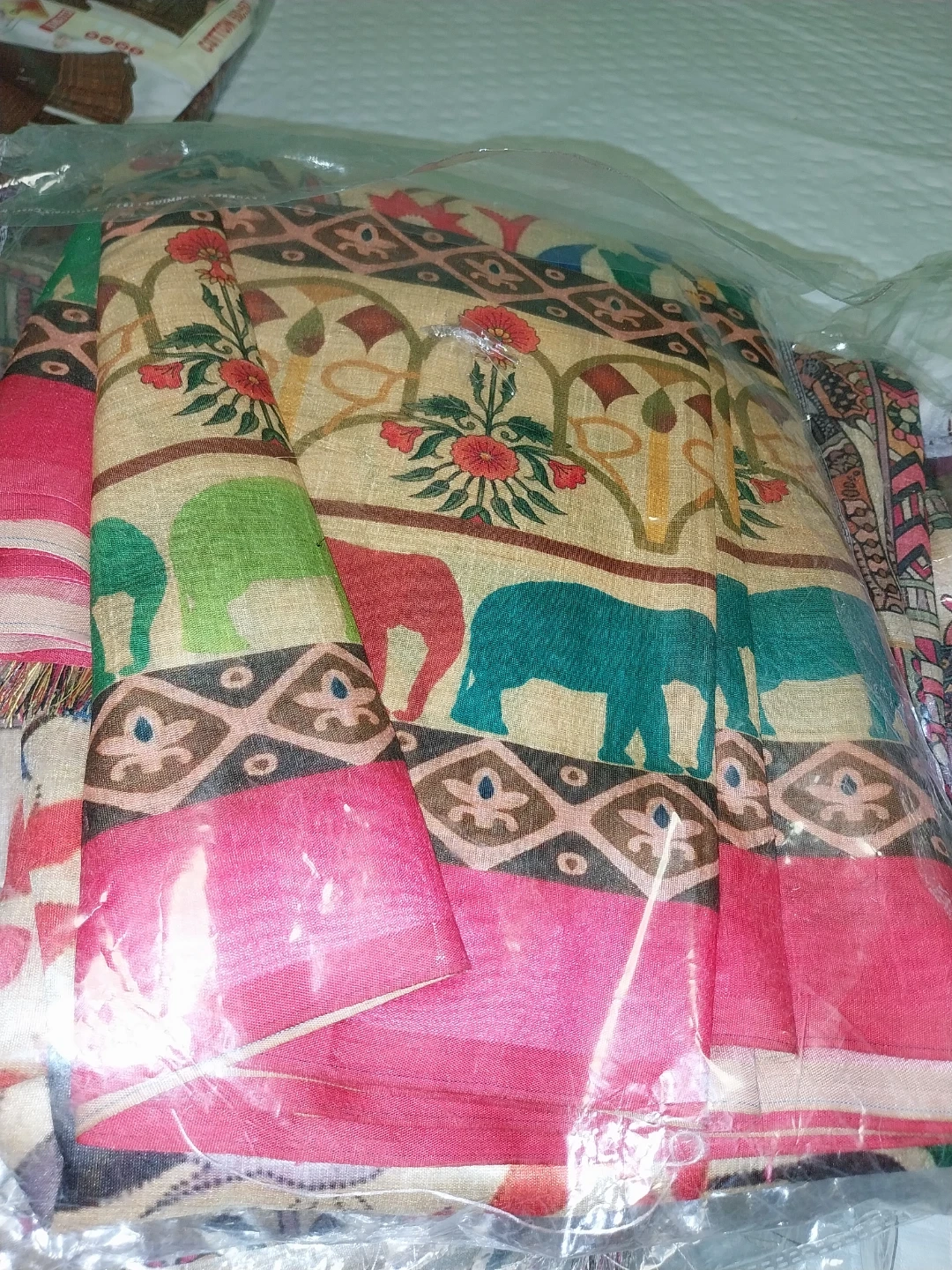 Selling a collection of Indian print sarees with blouse. They come in assorted colours and patterns, featuring traditional designs like elephants, flowers, and geometric shapes. Perfect for adding a touch of cultural flair to your wardrobe.