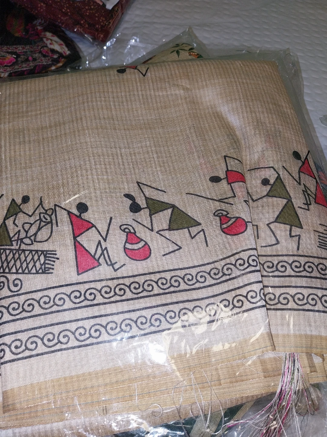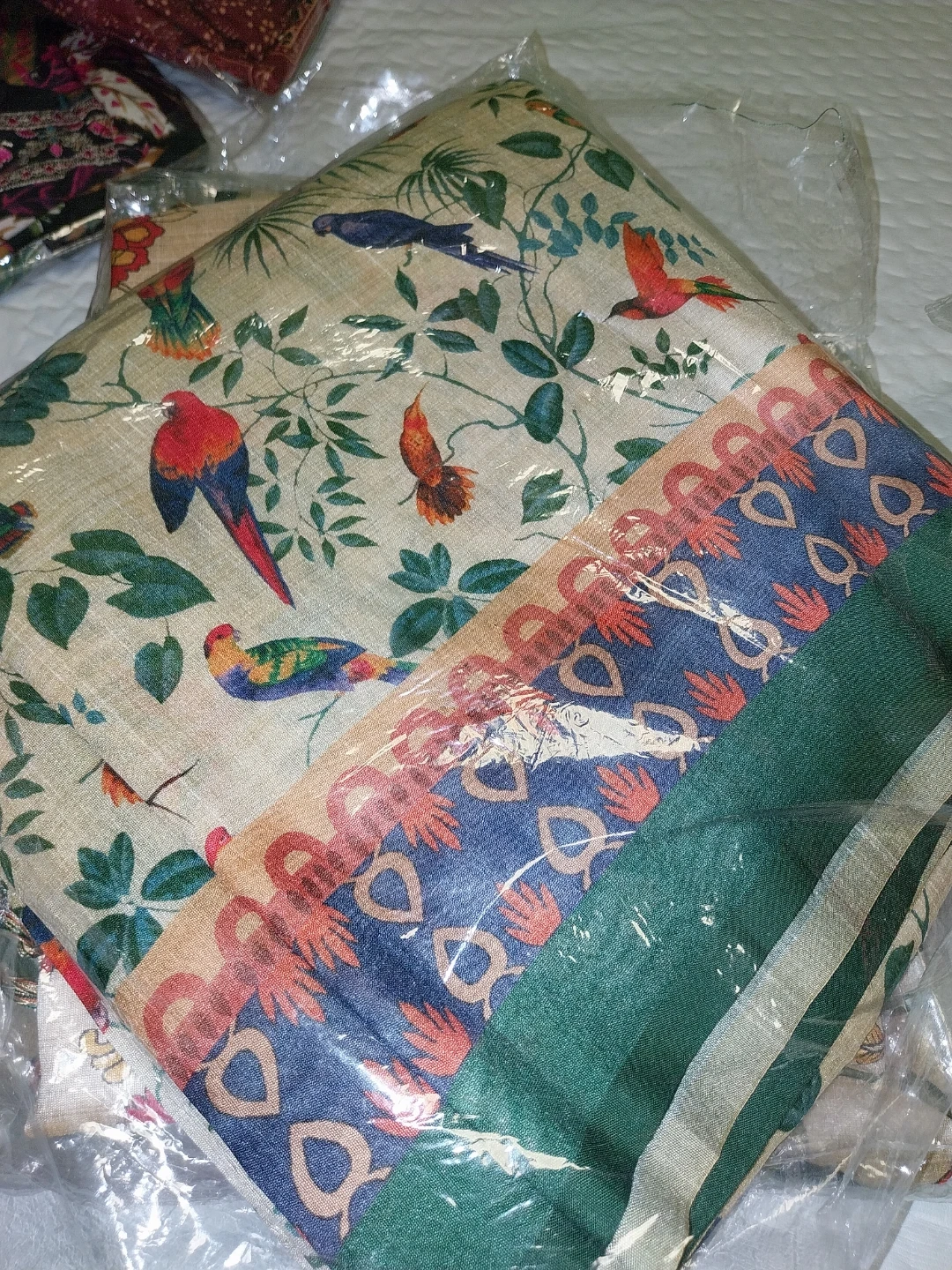 Selling a collection of Indian print sarees with blouse. They come in assorted colours and patterns, featuring traditional designs like elephants, flowers, and geometric shapes. Perfect for adding a touch of cultural flair to your wardrobe.