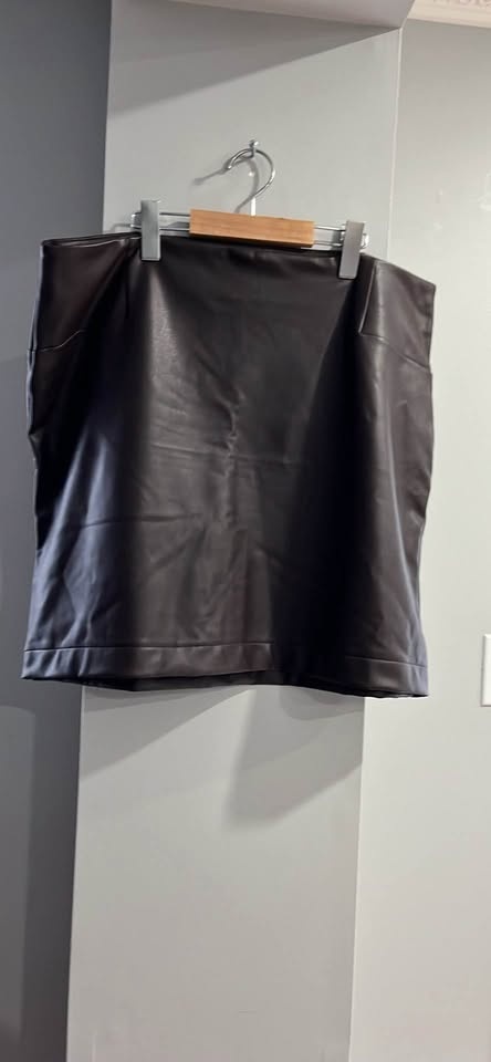 Stylish dark brown faux leather mini skirt. This skirt is super versatile, can dress it up or down. Great for fall/winter outfits.