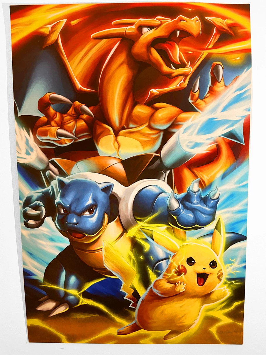 Pokemon Starter pack artwork by me! 12x18 inches, semi gloss paper. I have a lot more anime and comic poster on sale. Check out my full listing. For more of my work check out: