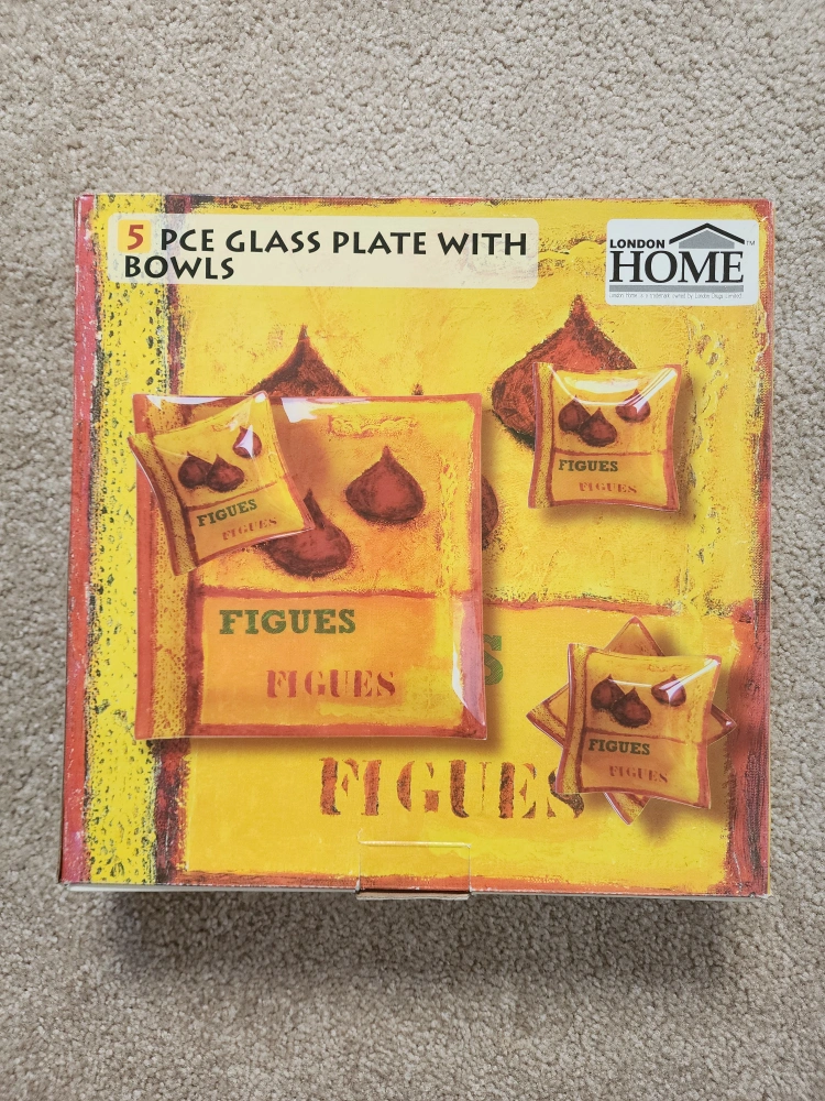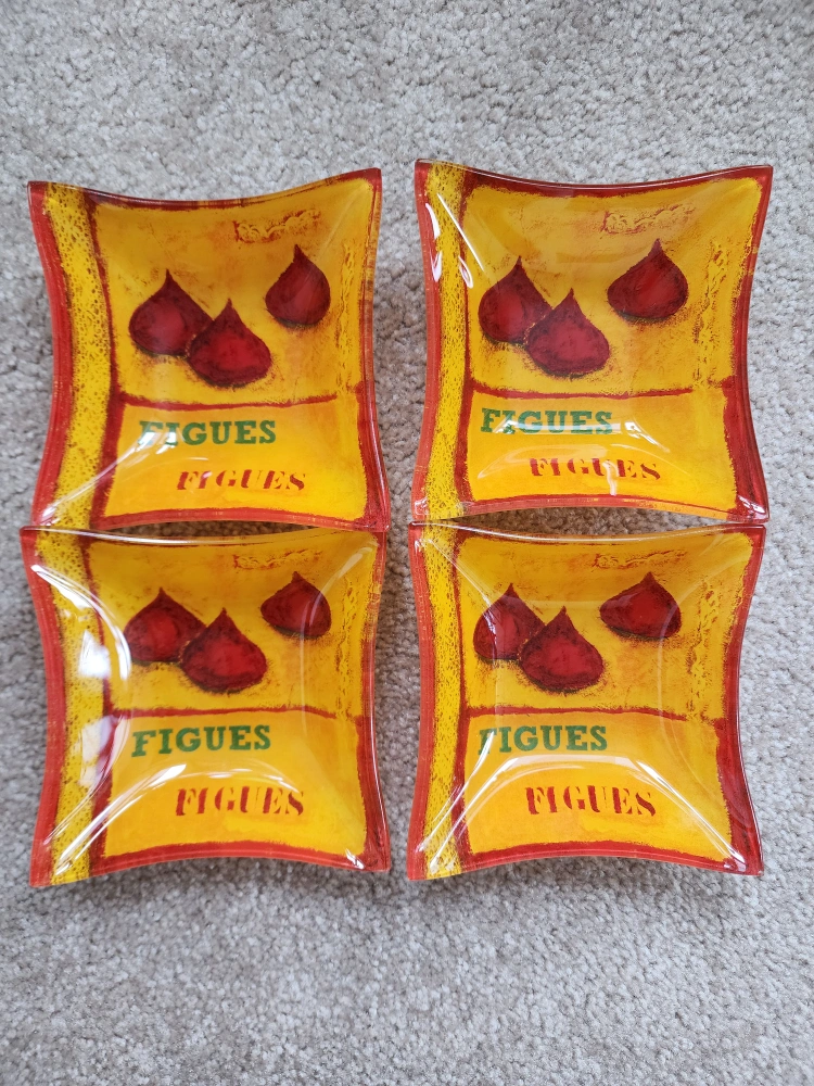 - Dimensionsserving plate: 12"x12" | bowls: 4"x4"