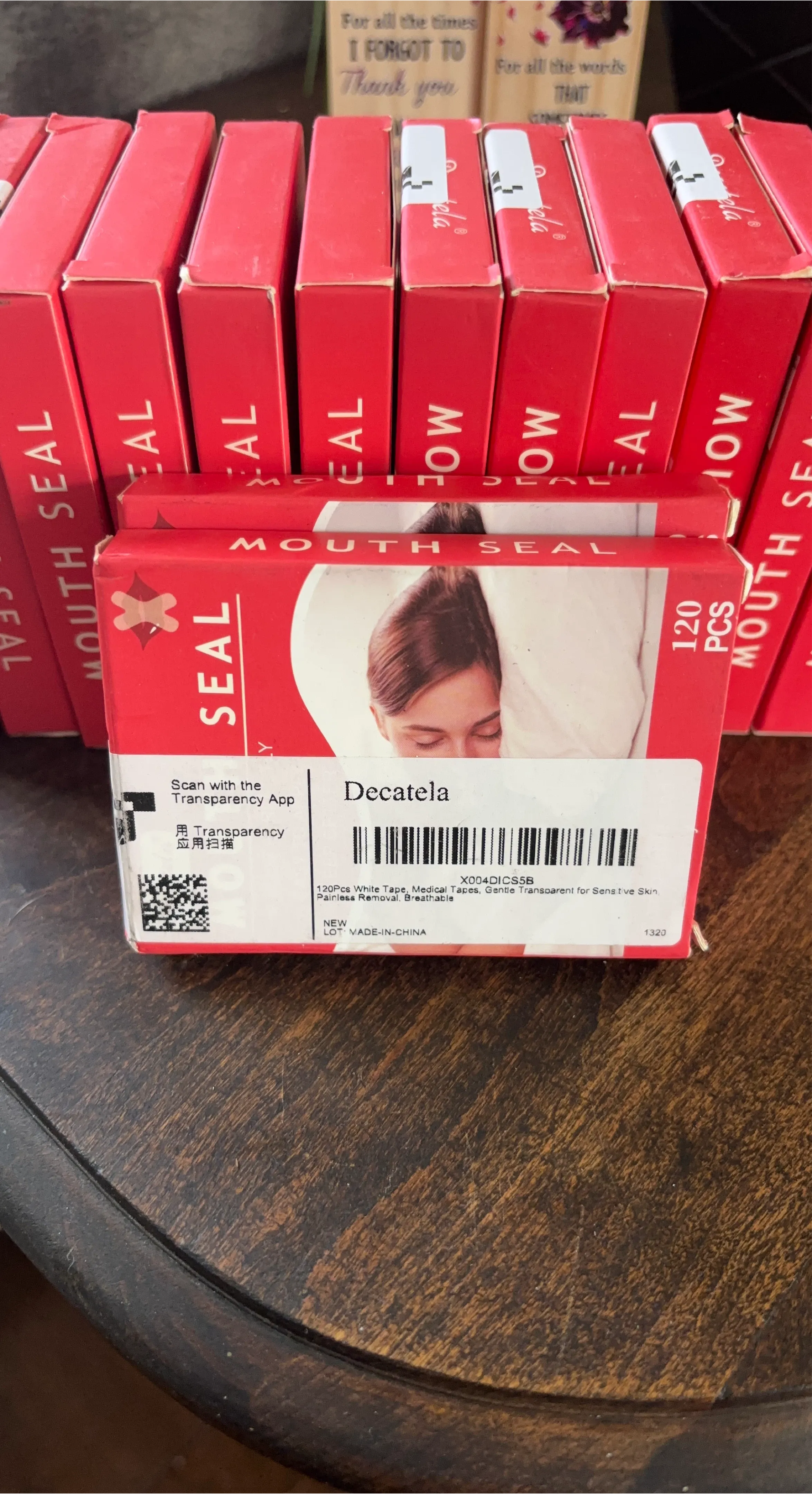 14 packs of 120 Pcs of Decatela white mouth seal tape included. Medical tapes with gentle, transparent material for sensitive skin. Painless removal and breathable for comfort. Made in China.