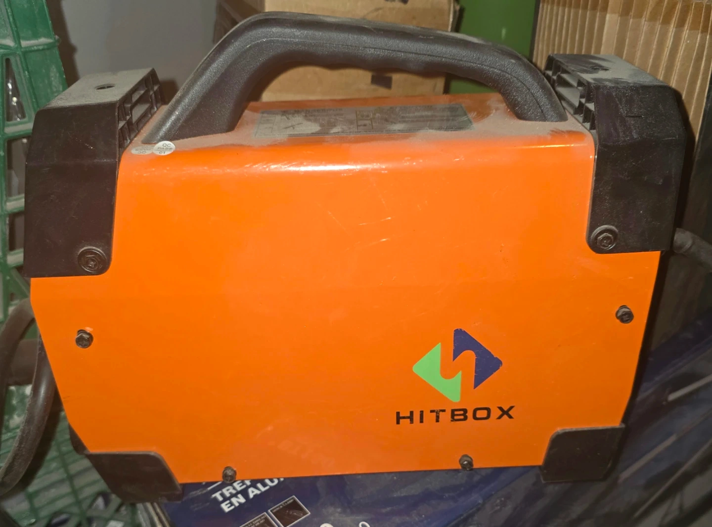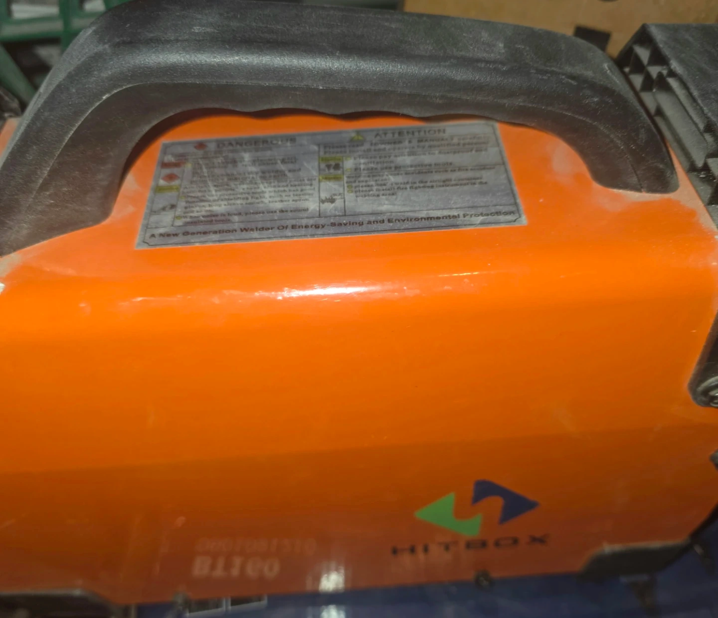 HITBOX ARC-2001 welder, perfect for metalworking projects. It's a portable and powerful unit. Orange colour, metal housing.