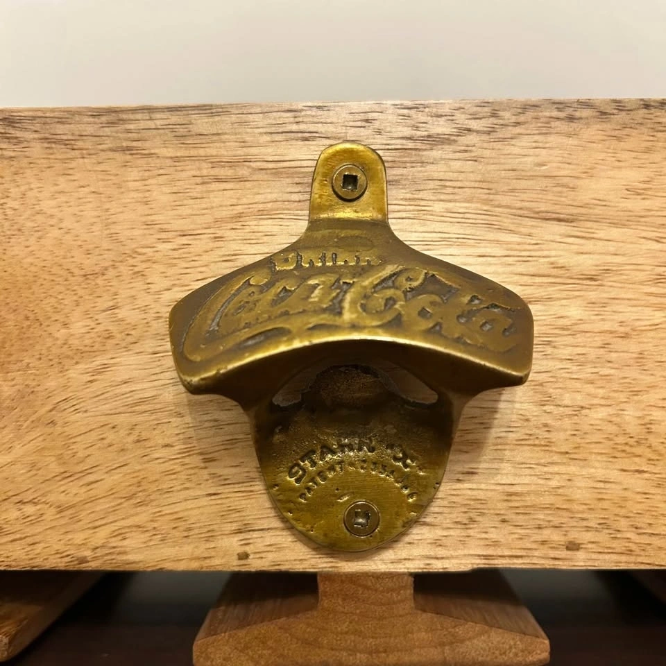 Rustic Wooden Wall-Mounted Bottle Opener with Coca-Cola Opener