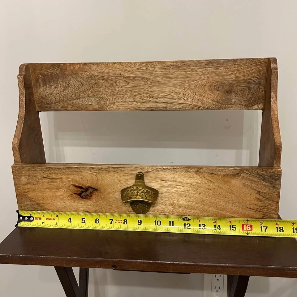 Solid wood wall-mounted bottle opener and organizer with a classic Coca-Cola metal opener. This piece features a handcrafted rustic wood design with natural grain and character, plus lower slots that can be used for caps, mail, or small bar accessories. A great decorative and functional accent for a home bar, man cave, kitchen, or garage. The Coca-Cola opener adds a nice vintage-inspired touch, making this both a practical everyday item and a cool display piece for soda or advertising collectibles fans. Sturdy, attractive, and full of character. Pick up in the Seton area, Calgary. See also my other lots. Open to your questions and suggestions. If necessary, I provide additional photos. These are not new things, so please look carefully at the photos. Measurements can be seen in the photos.