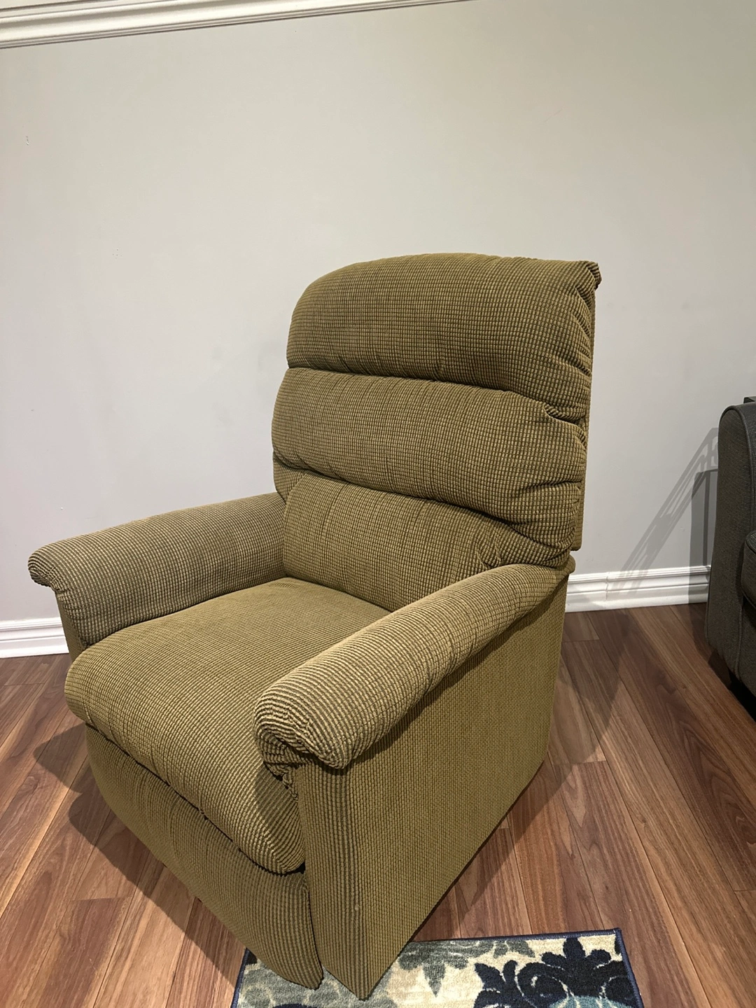 Buy & Sell🧡La-Z-Boy Recliner Chair - beige🧡La-Z-Boy Recliner Chair - beige$50Comfortable recliner chair. Beige fabric. Reclining mechanism works well. Slight wear.ConditionGoodWHERE TO MEETResidenceView MapSELLERverifiedSalynePembroke761 review0 chats·0 favorites·14 viewsSEND CHAT TO SELLERHi Salyne! I’m interested in your listing.Hi Salyne! I’m interested in your listing.Get the Karrot app to chatSign In to chat