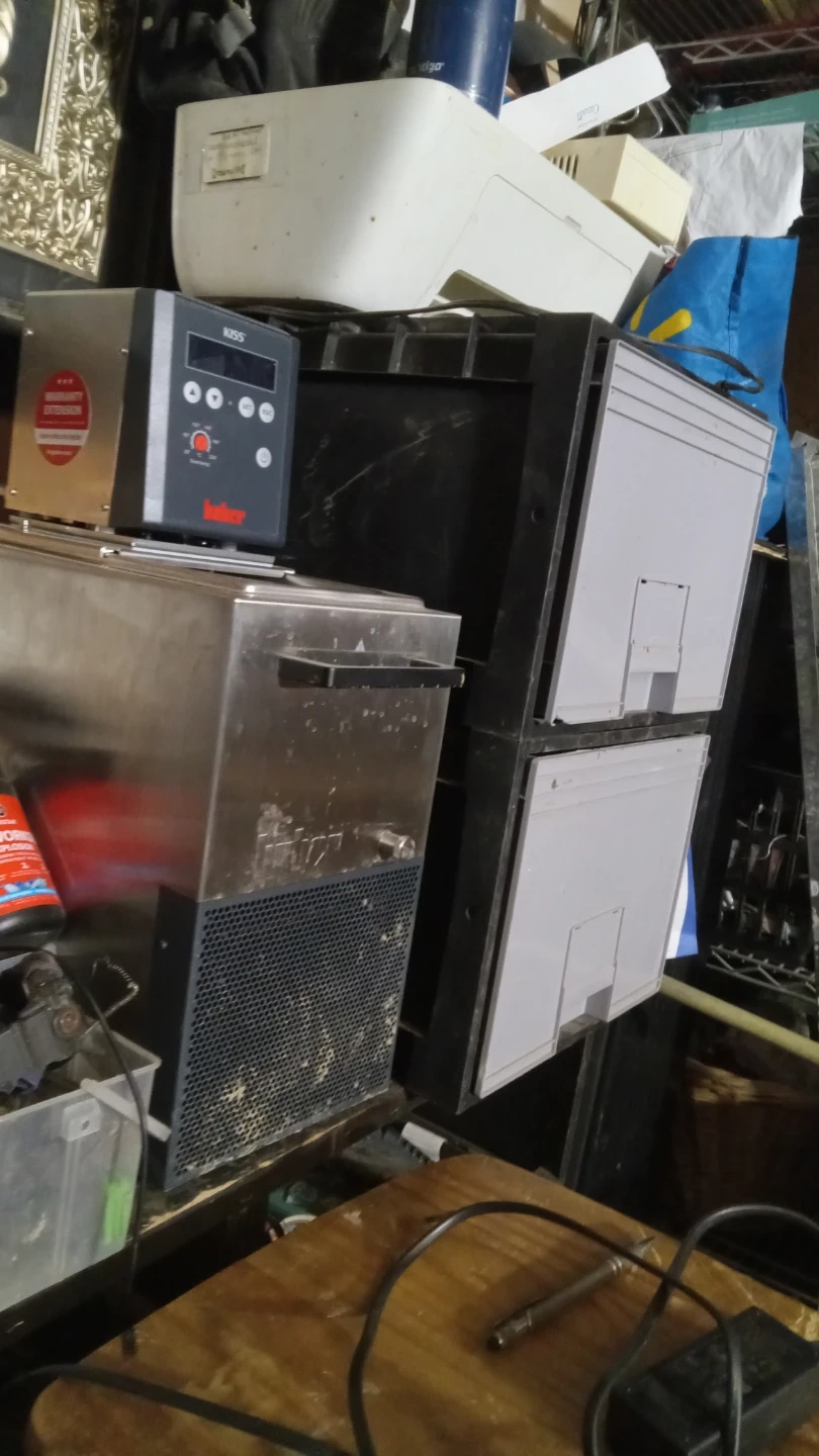 This is a Hüper KISS 5200 immersion circulator. It's a stainless steel unit with a digital control panel. Temperature settings are displayed on the screen.