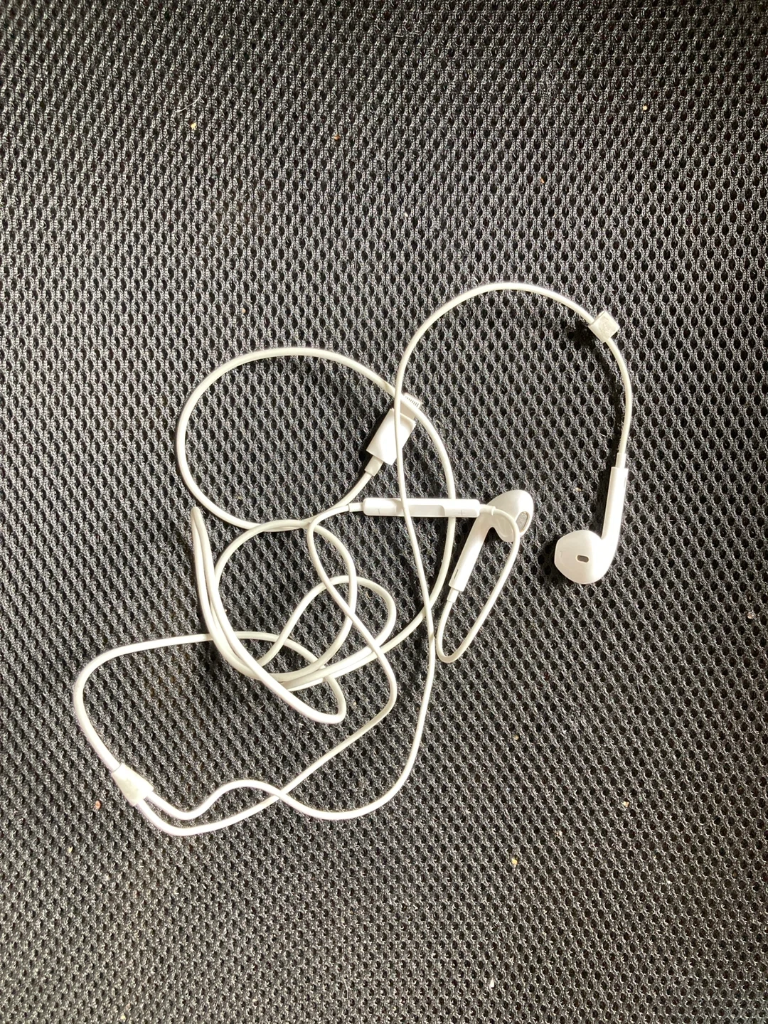 White Apple EarPods with a standard 3.5mm headphone jack. These wired earbuds are great for listening to music or taking calls. They come with a built-in microphone and remote for volume control and playback. Barely used.
