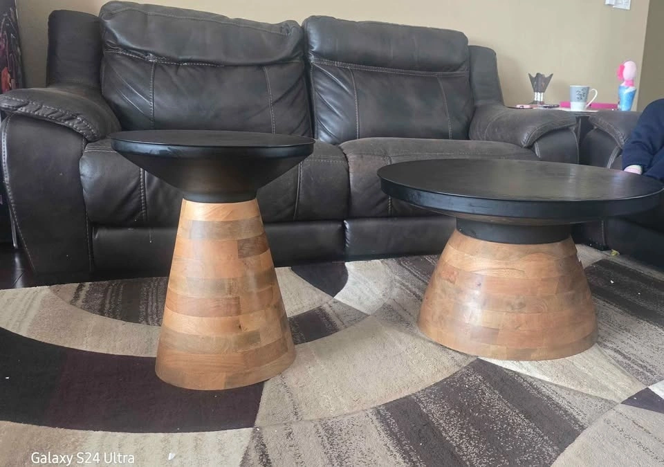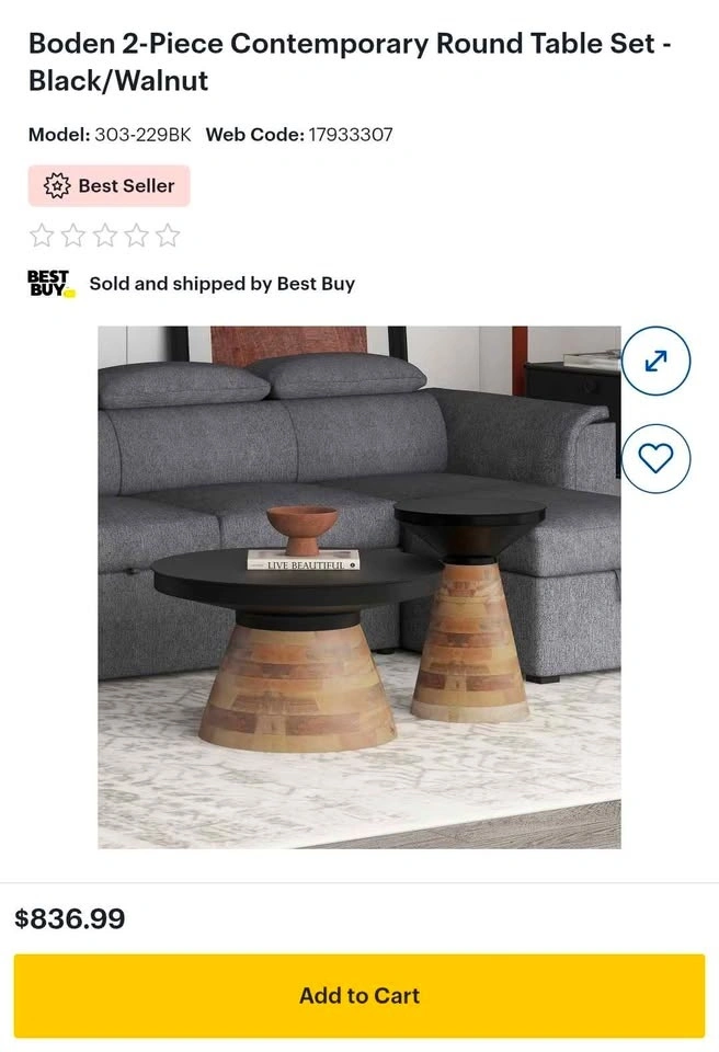 Used Boden 2-Piece Contemporary Round Table Set in Black/Walnut. Originally retailed for over $800. Priced to sell ASAP.