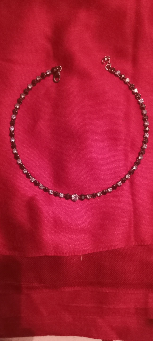 This sparkly choker necklace features a mix of clear and black stones. It has a lobster clasp closure for easy wear. Great for adding a bit of glam to any outfit!