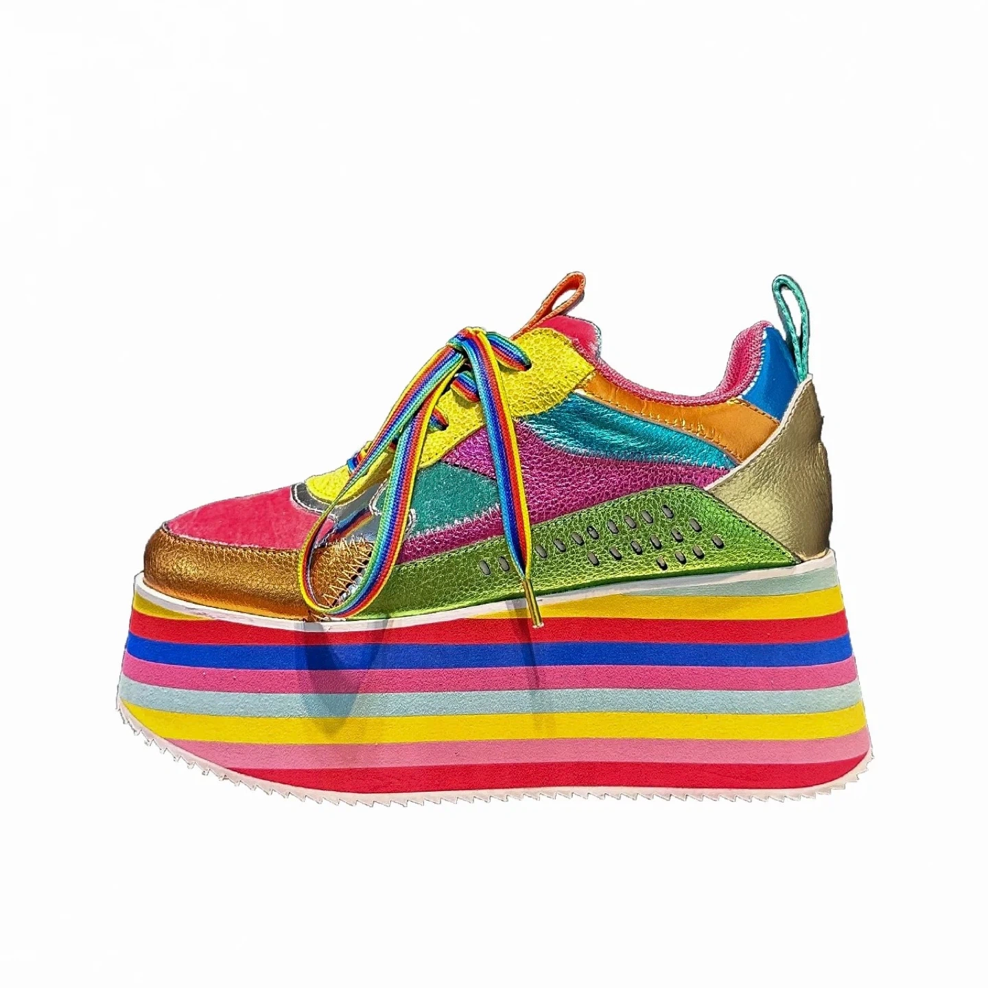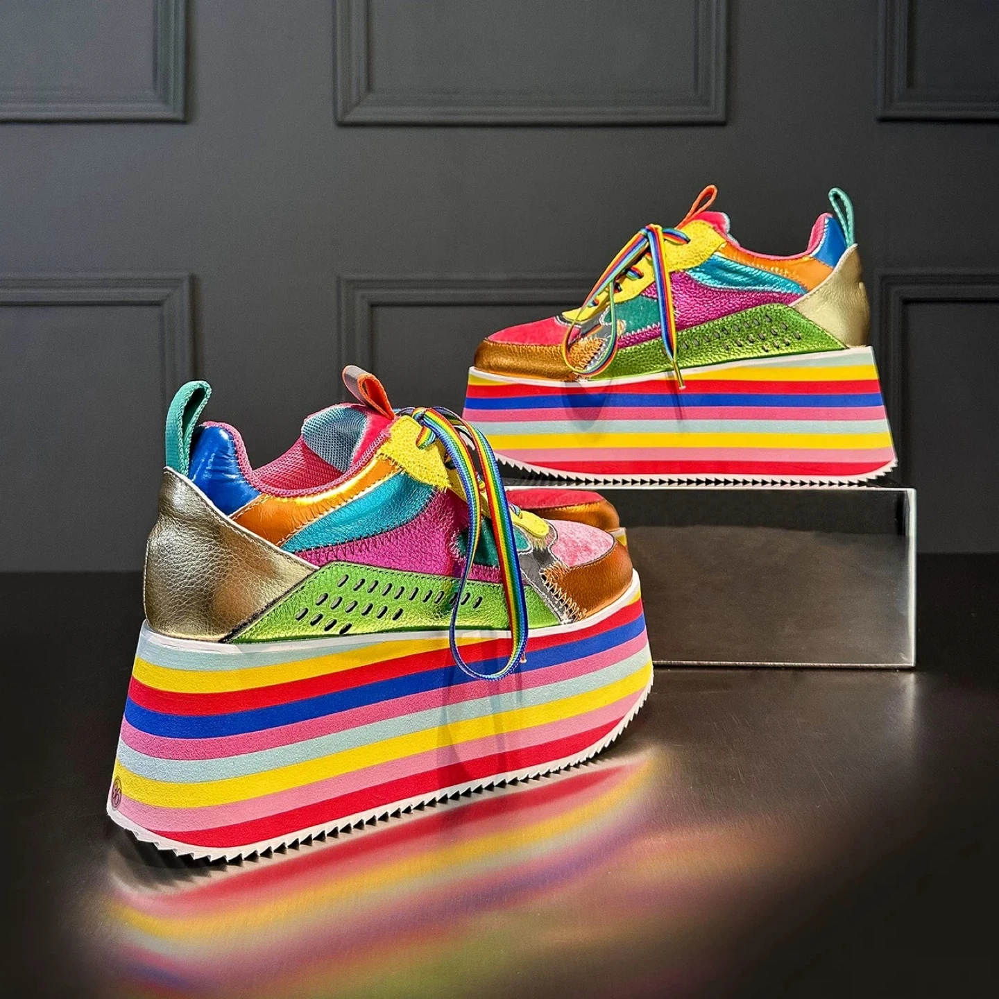 Colourful Platform Sneakers with Rainbow Striped Soles