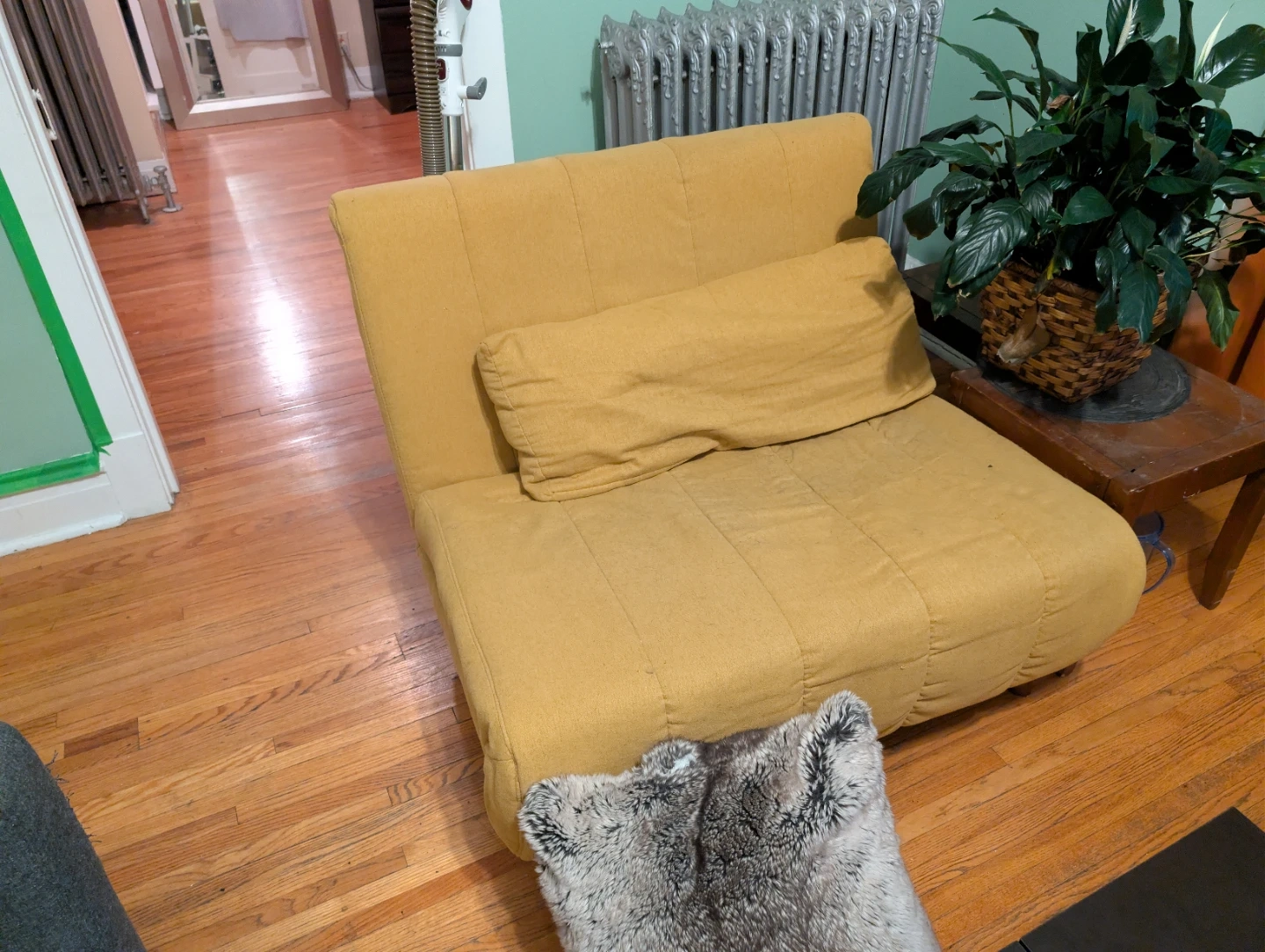 Yellow Futon Chair with Pillow