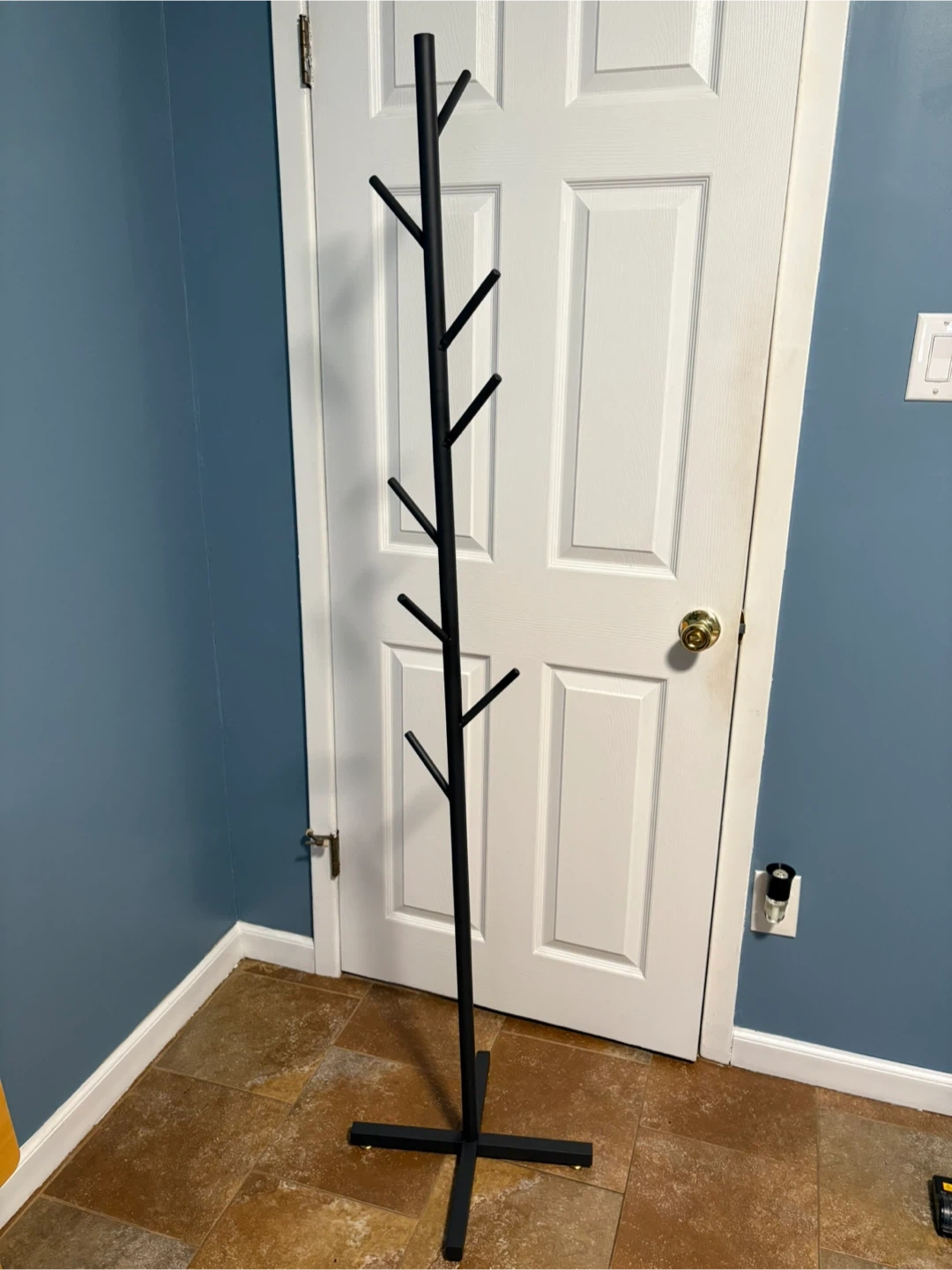 Selling a black metal coat rack in great condition! It's perfect for hanging coats, hats, and bags. This coat rack is a stylish and functional addition to any entryway or room