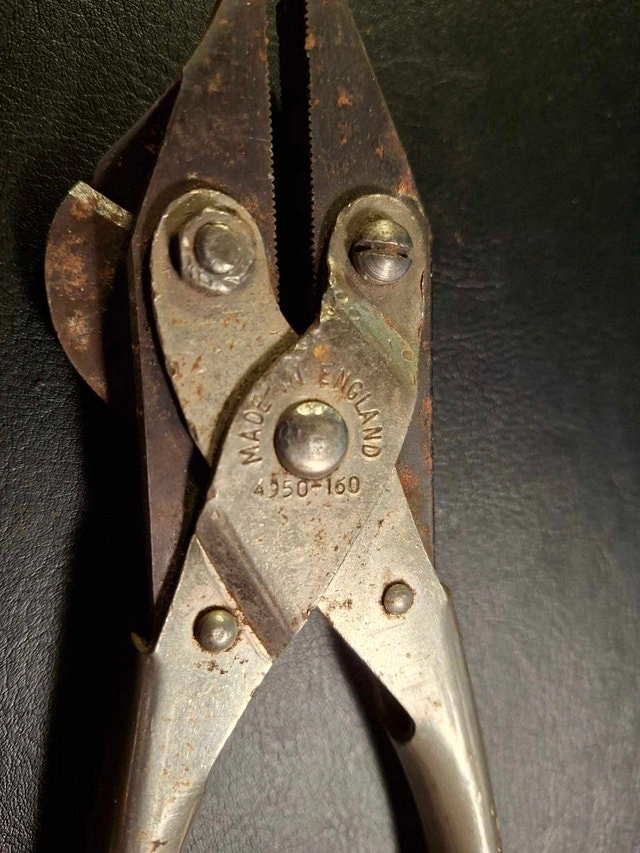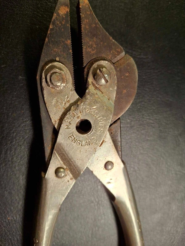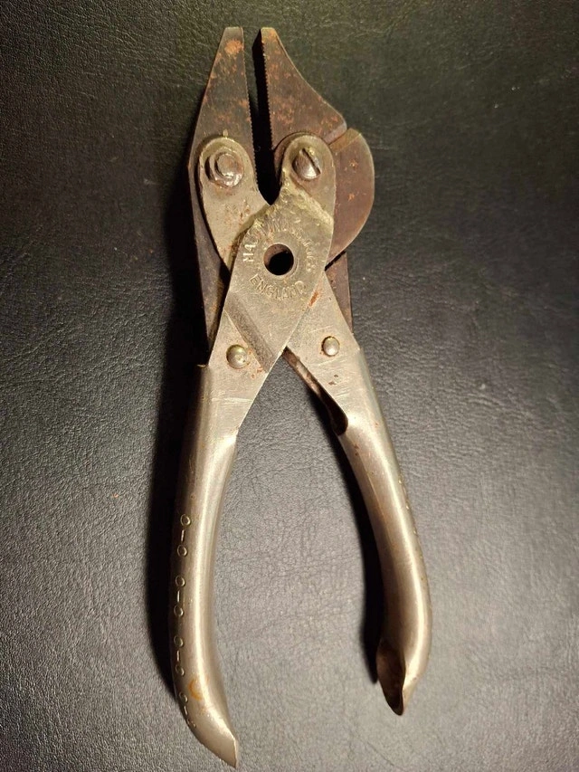 These are Maun Parallel Action Pliers, likely the Flat Nose or Universal model with a side cutter. Their unique parallel action design means the jaws stay parallel throughout their range of motion, providing a secure, vice-like grip. They often feature an open throat for feeding wire through the center. If the ad is up, it's available! Cash accepted.
