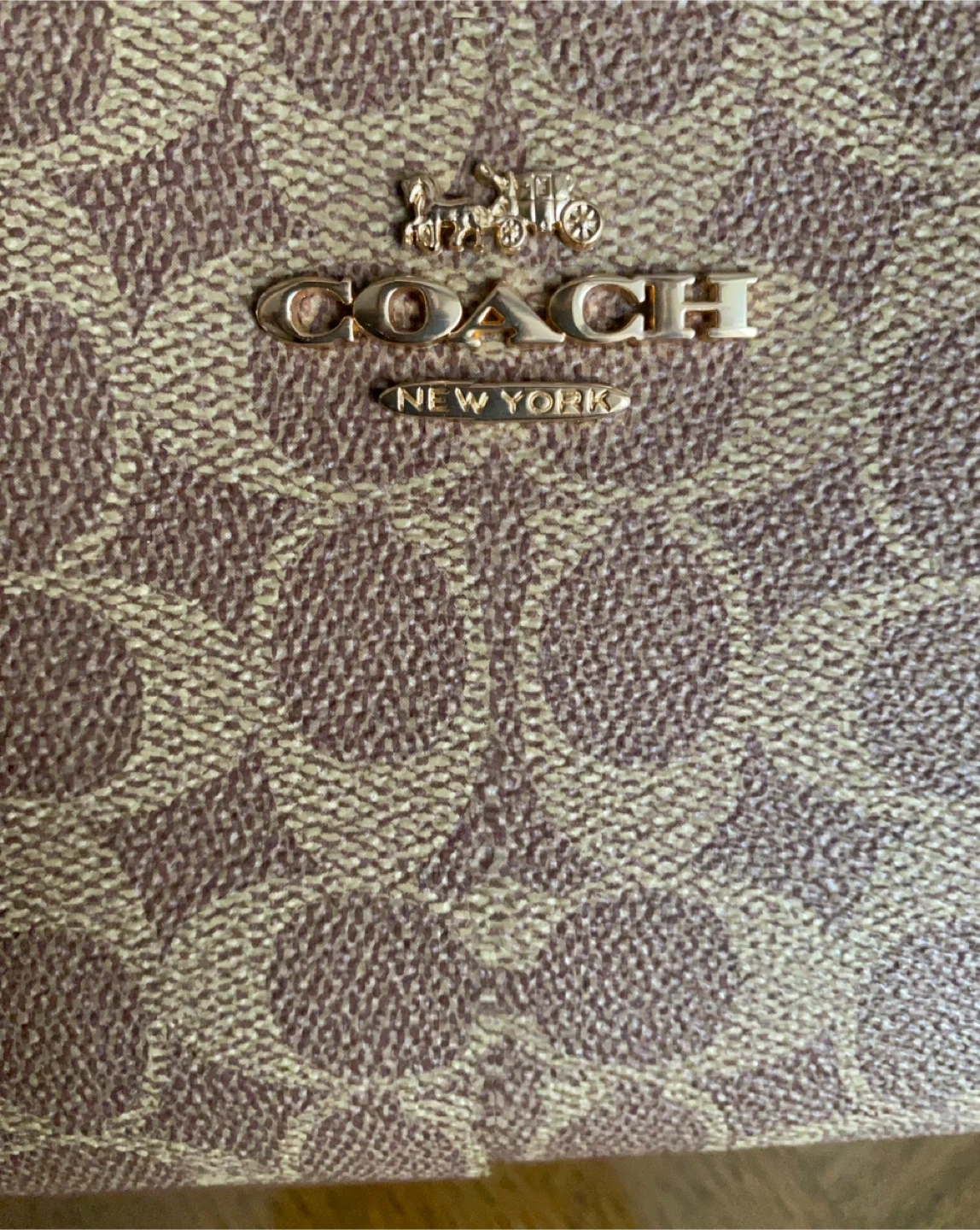This is a Coach small shoulder bag in their signature "C" monogram print. It features gold-tone hardware and a detachable strap. It comes with a dust bag.and 2 straps. UA