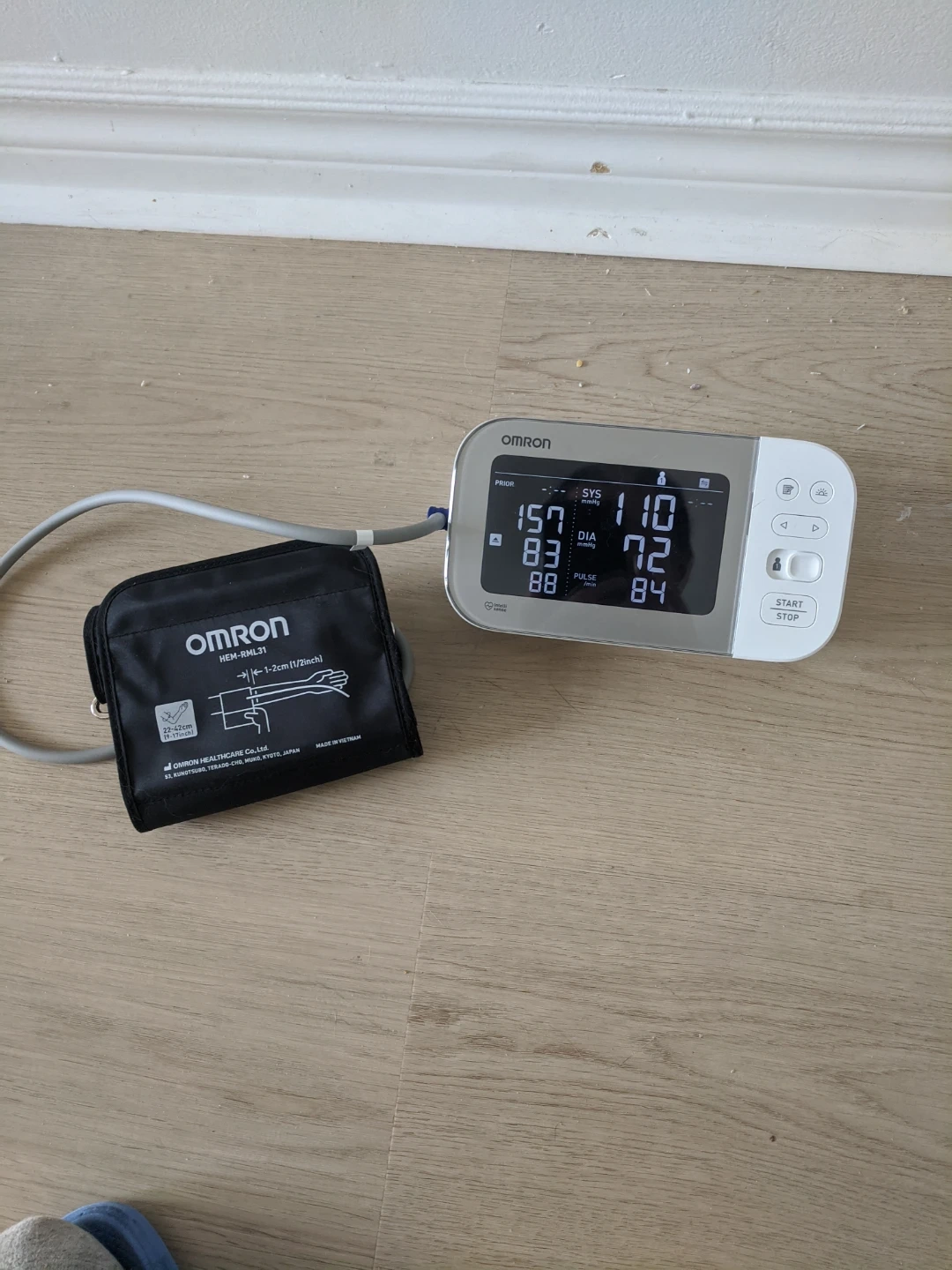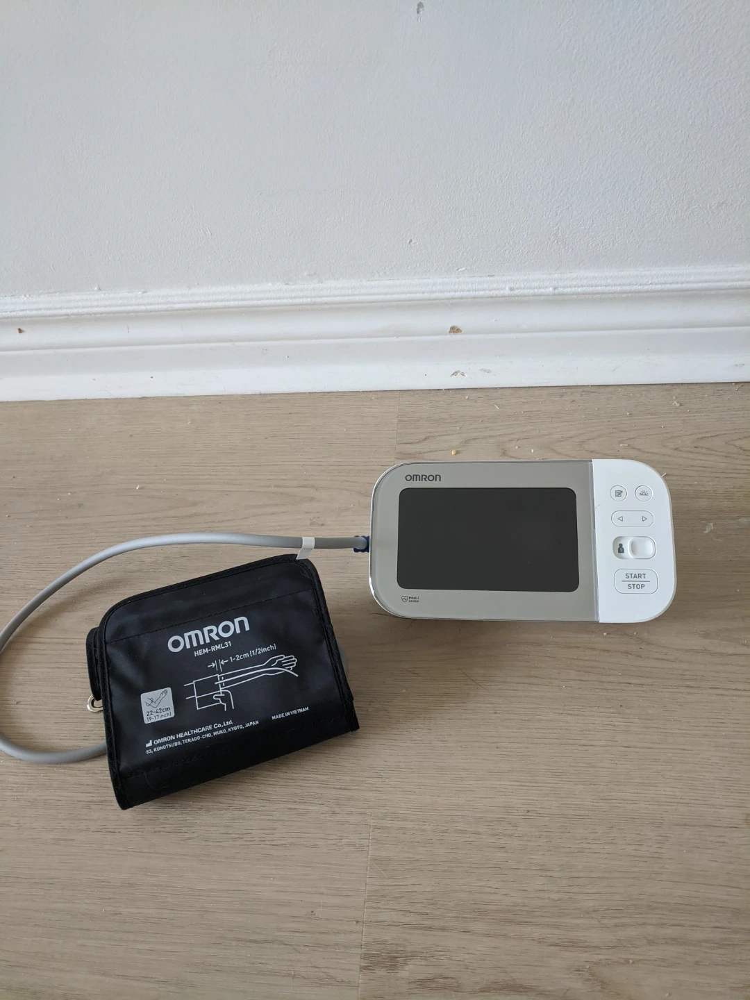 Omron HEM-RML31 blood pressure monitor with an arm cuff. Cuff fits 22-42cm (9-17 inches) arms. It has a clear digital display and easy-to-use controls. Pick up at 195 Merton Street Toronto or pick up at Subway station Davisivill . And I can deliver it to your house but you need to pay me another $3. Thanks.