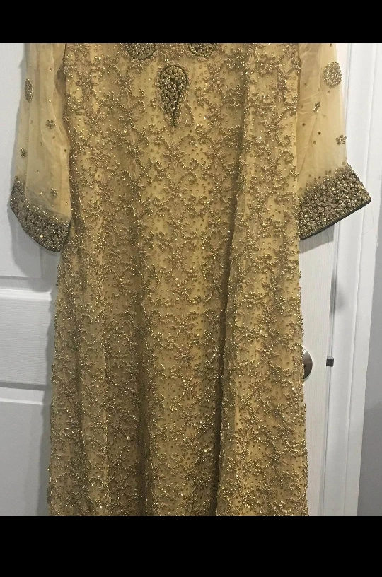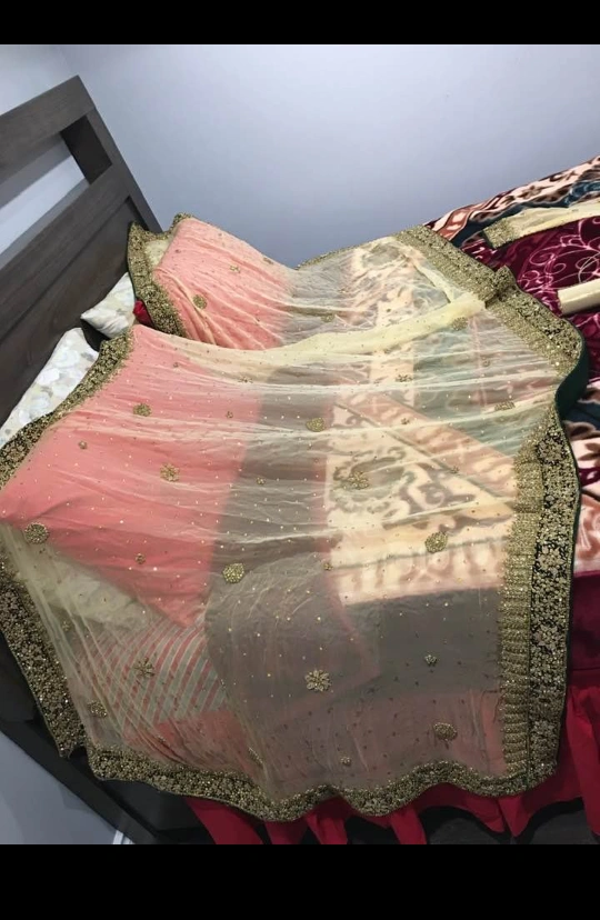 South Asian (Pakistani/Indian/Bangladeshi) Bridal dress for sale. Dress has only been wore once and is in mint condition. This dress was handcrafted at a well-known bridal house and it comes with pouch