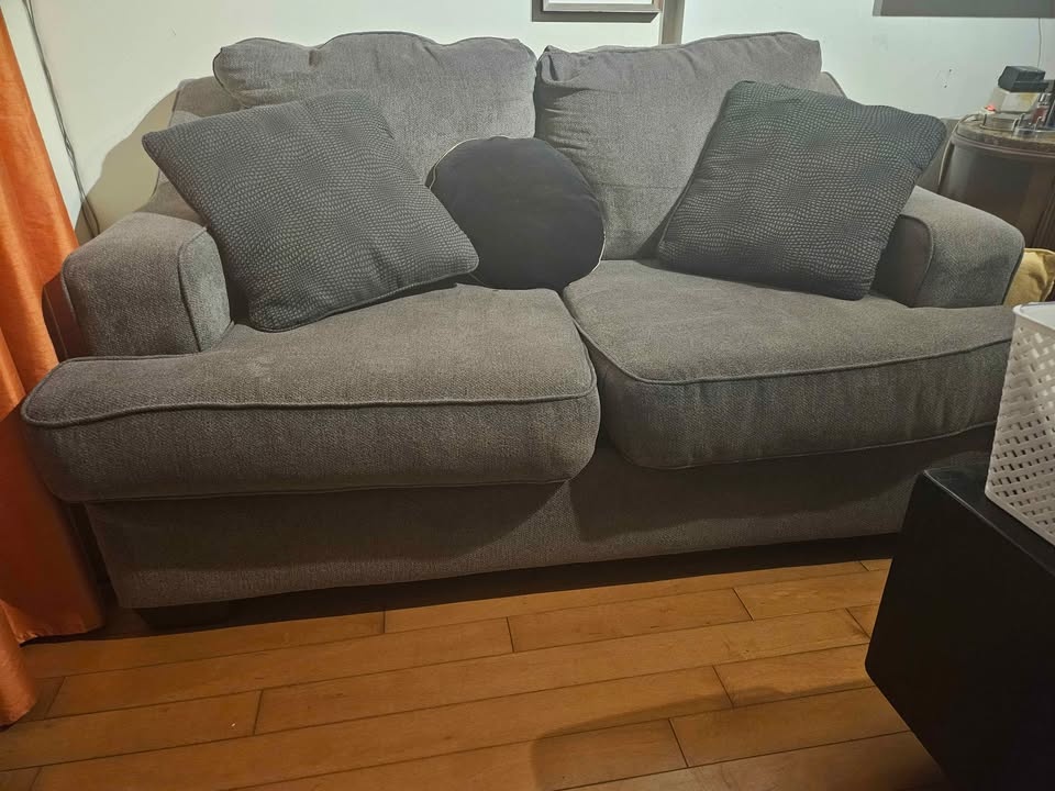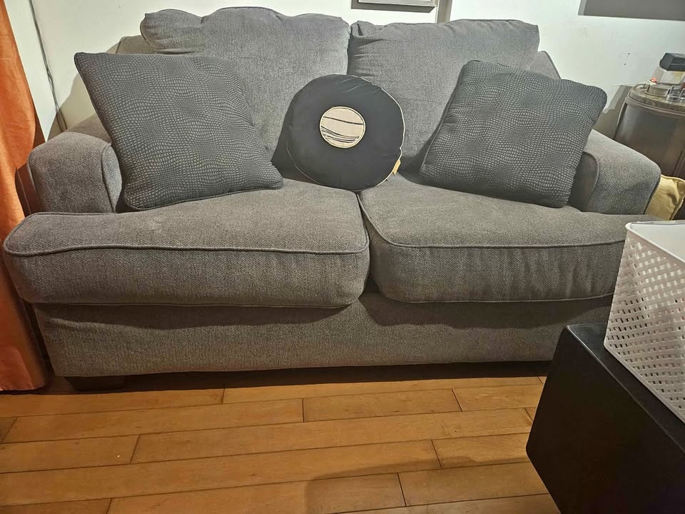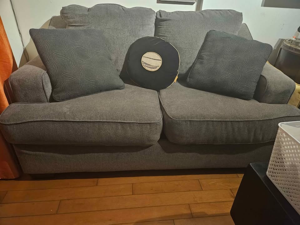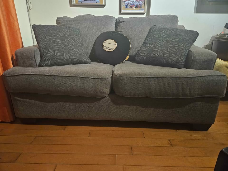Ashley 2- seater sofa slightly used dark grey comes with throw p